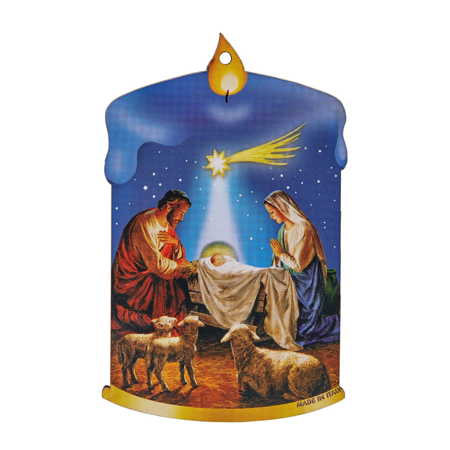 Blue Candle-shaped Christmas Decoration With Crib