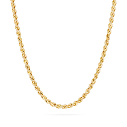 Striking and luminous, this thick yellow gold torchon chain necklace stands out for its bold, spiral-shaped links that reflect light beautifully. Its generous volume and solid structure make it ideal for pairing with large religious pendants or wearing alone as a statement piece. A strong and eye-catching accessory for those who appreciate timeless elegance.