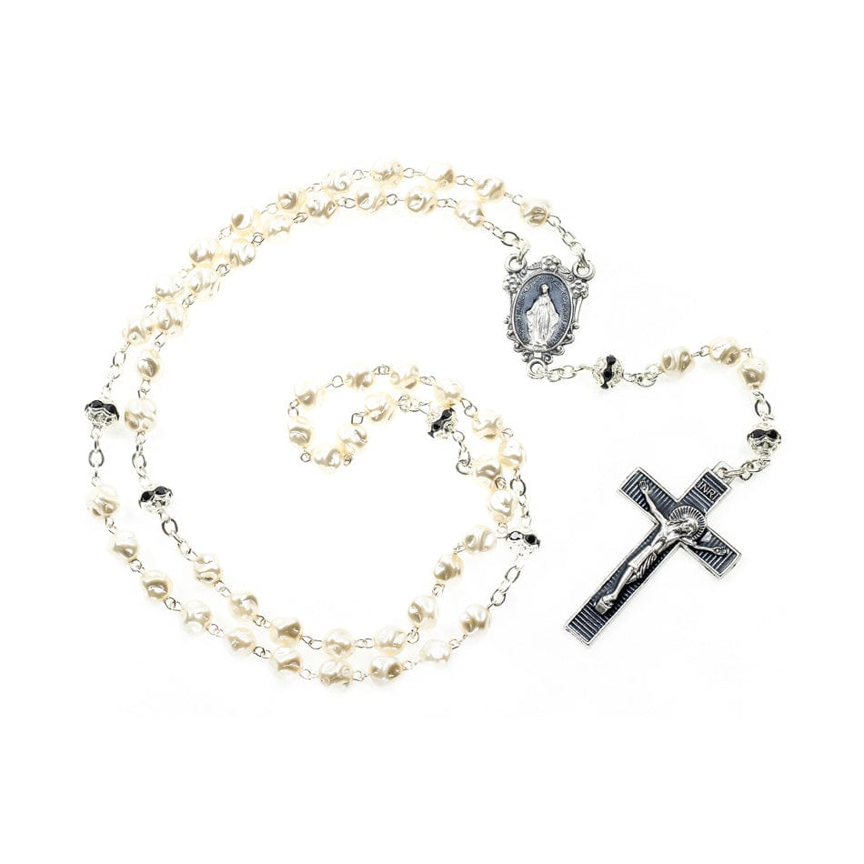 Glass Pearl Rosary with Black Crystal Rhinestones