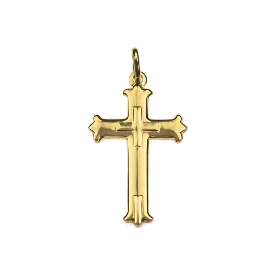 Sterling Silver plain Trefoil cross plated in gold 18 kt.