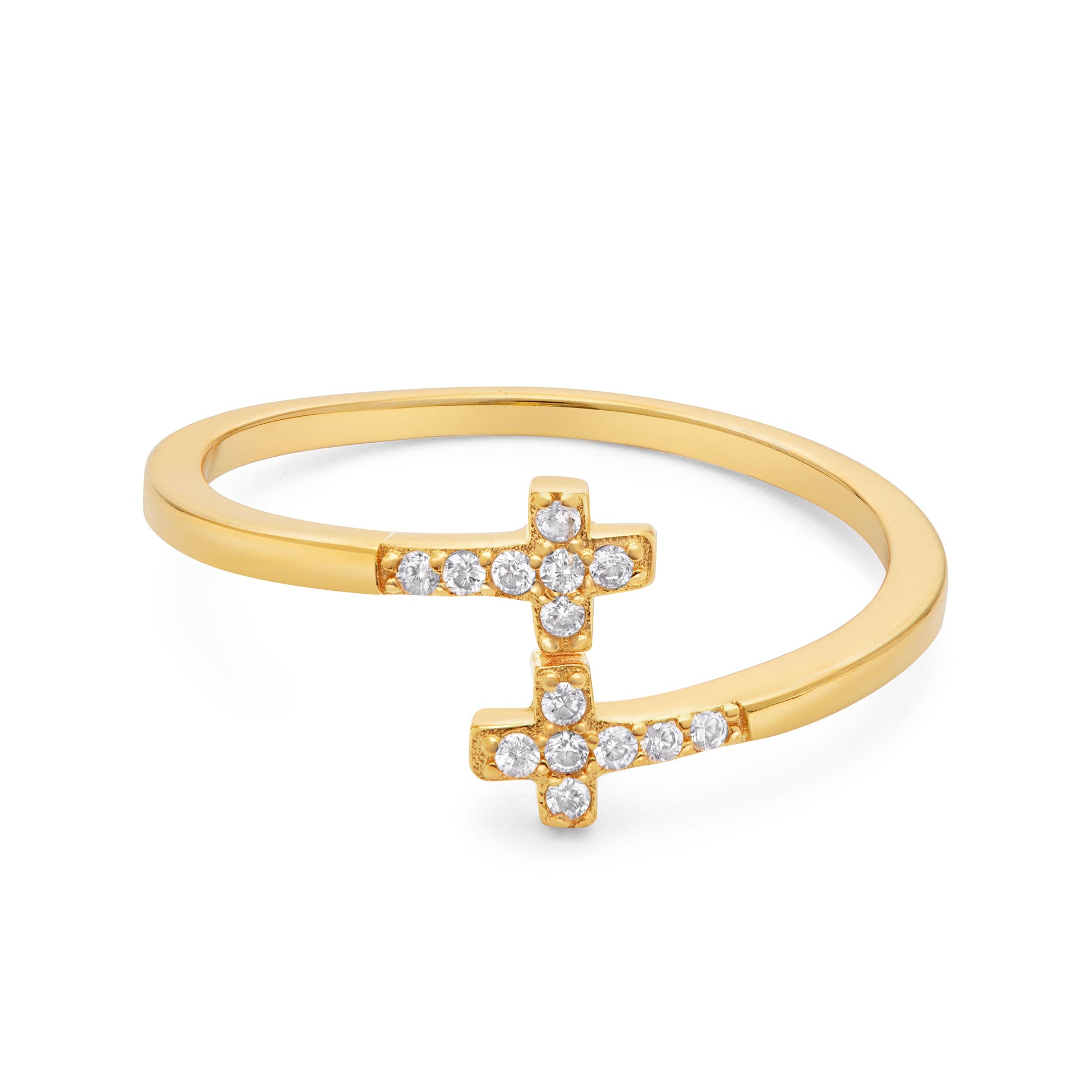 Gold-plated Sterling Silver Adjustable Ring With Two Cubic Zirconia and Crosses