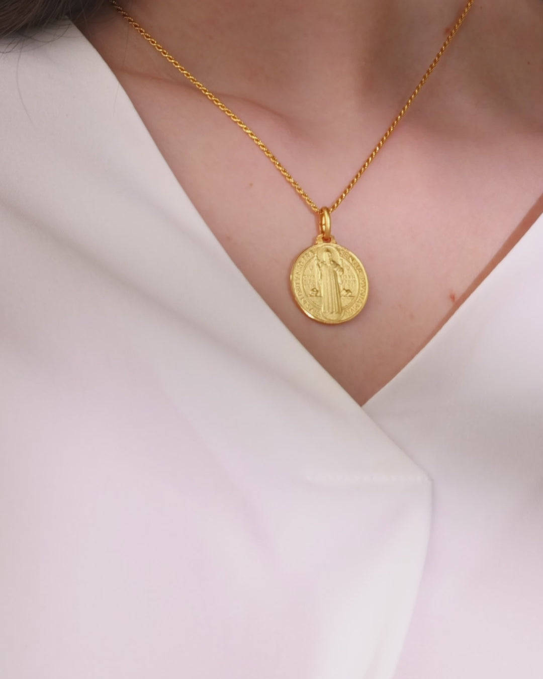Gold-plated Sterling Silver Medal of St. Benedict of Nursia