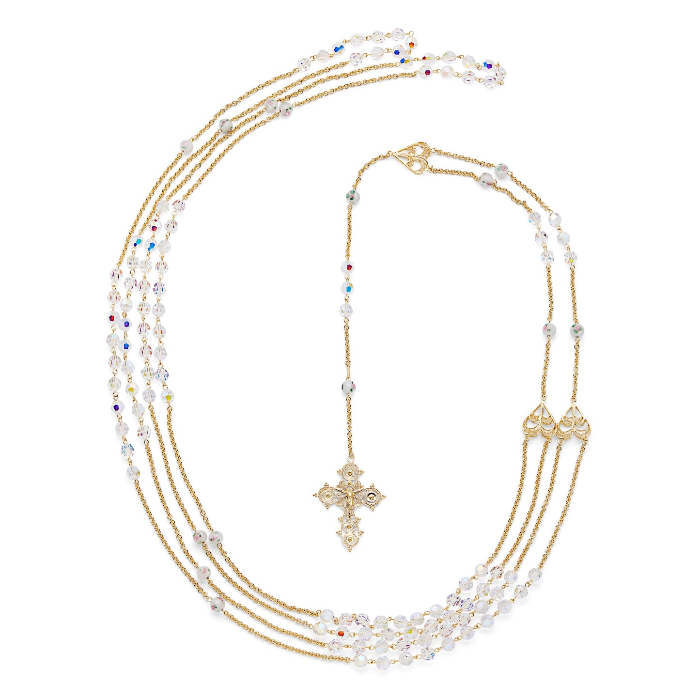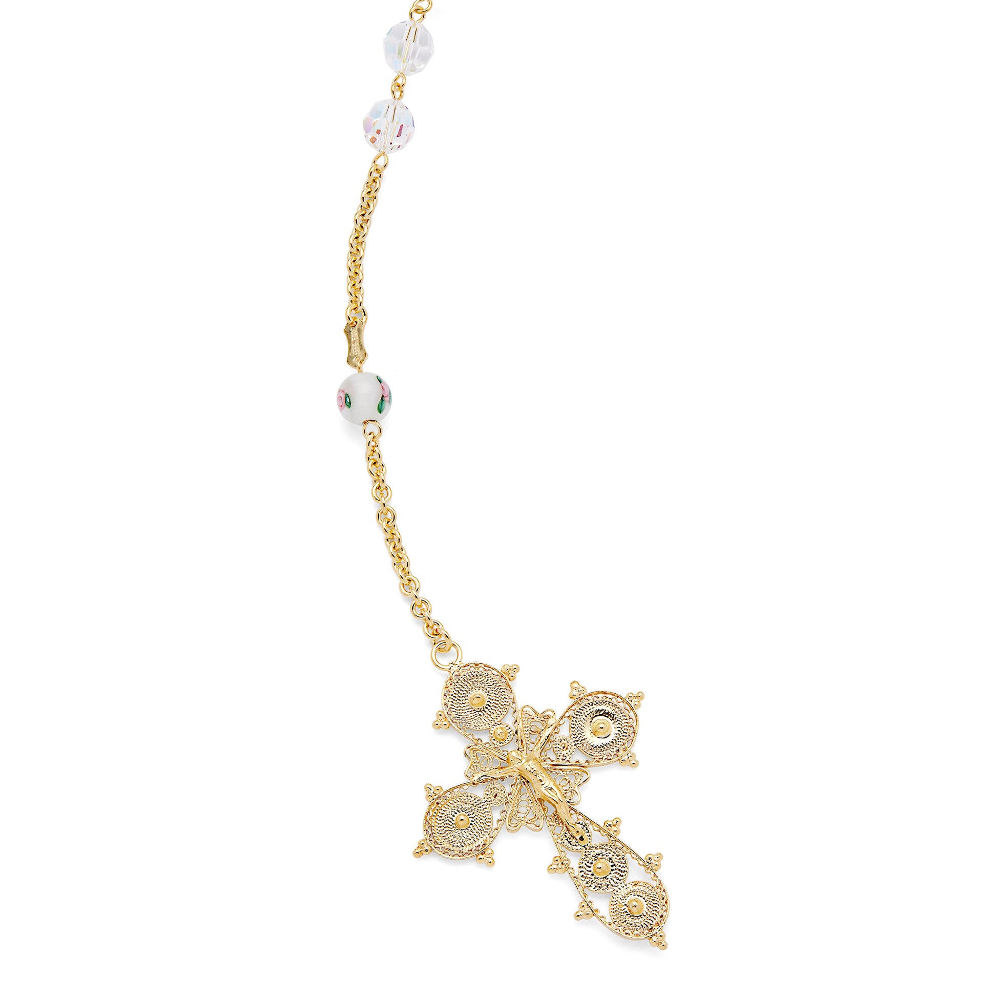 Gold-plated Sterling Silver Wedding Lazo with Crystal and White Lampwork Beads