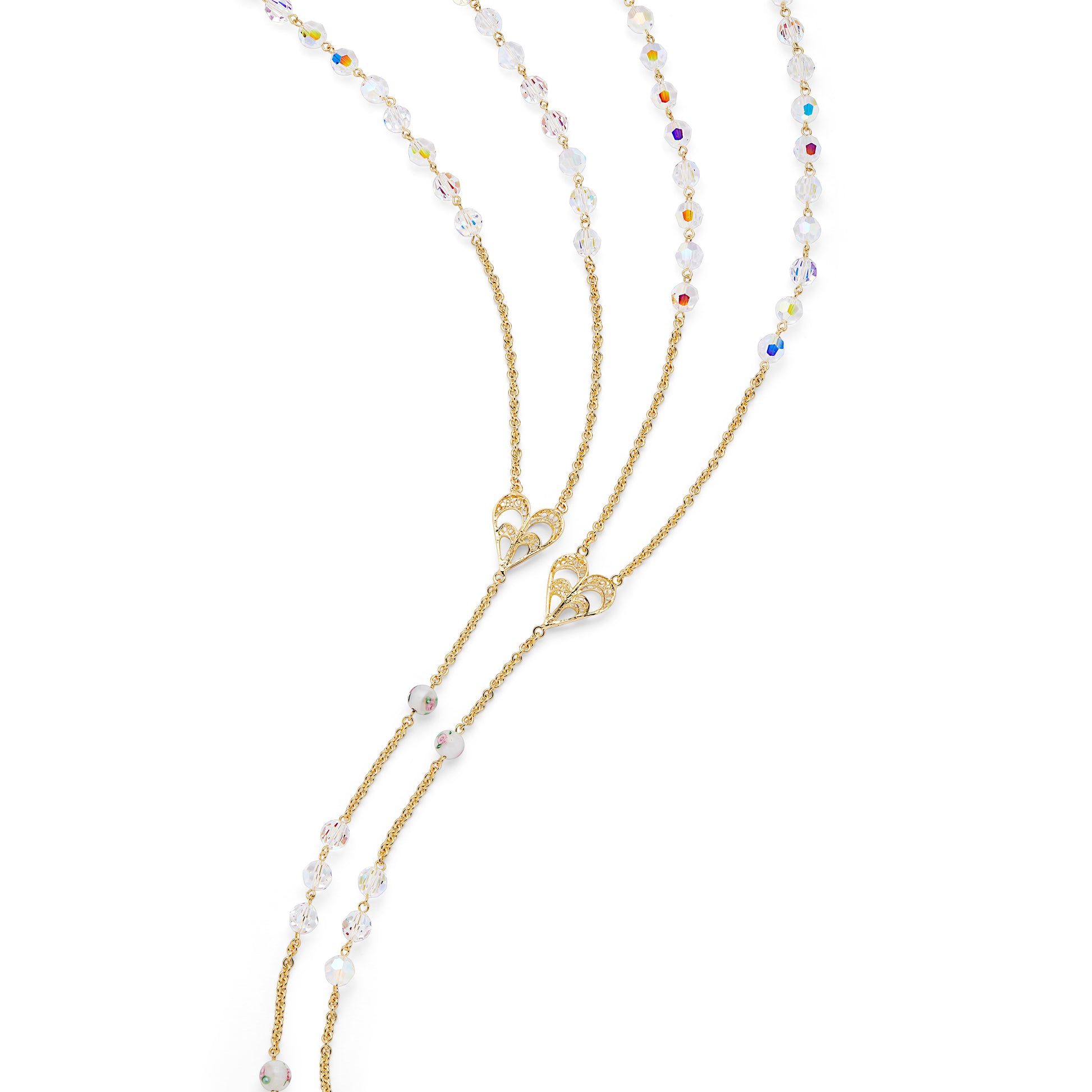 This Gold-plated Sterling Silver Wedding Lazo with pearls and white lampwork beads is a refined traditional accessory used in weddings, symbolizing the sacred and indissoluble bond of the couple. The lazo, made from sterling silver and plated in gold, adds a touch of luxury and elegance. The crystal representing purity and innocence, are complemented by handcrafted glass beads, created using the delicate lampwork technique. The size indicated as "Necklace" refers to the circumference of a single loop of the lazo, while the length can be checked in the size chart for an accurate reference.