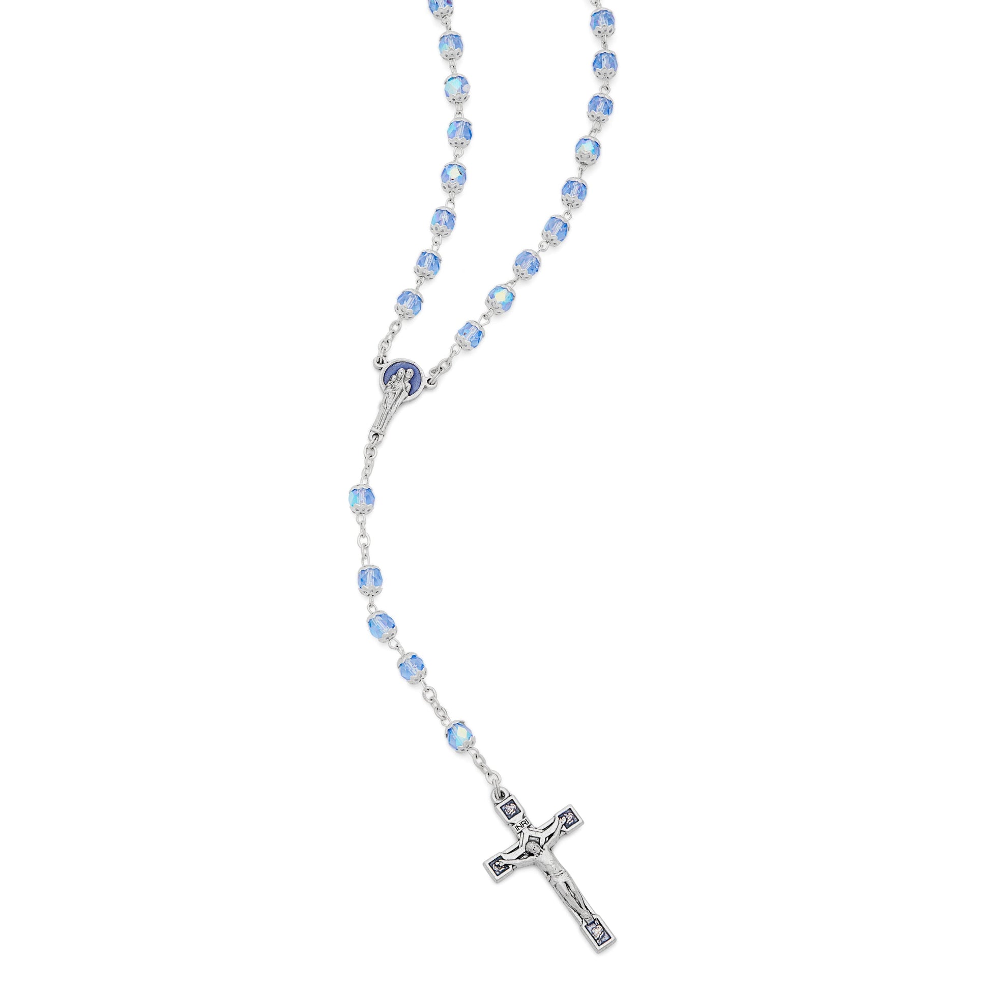 Holy Family Rosary in Sapphire Blue Faceted Crystal Beads