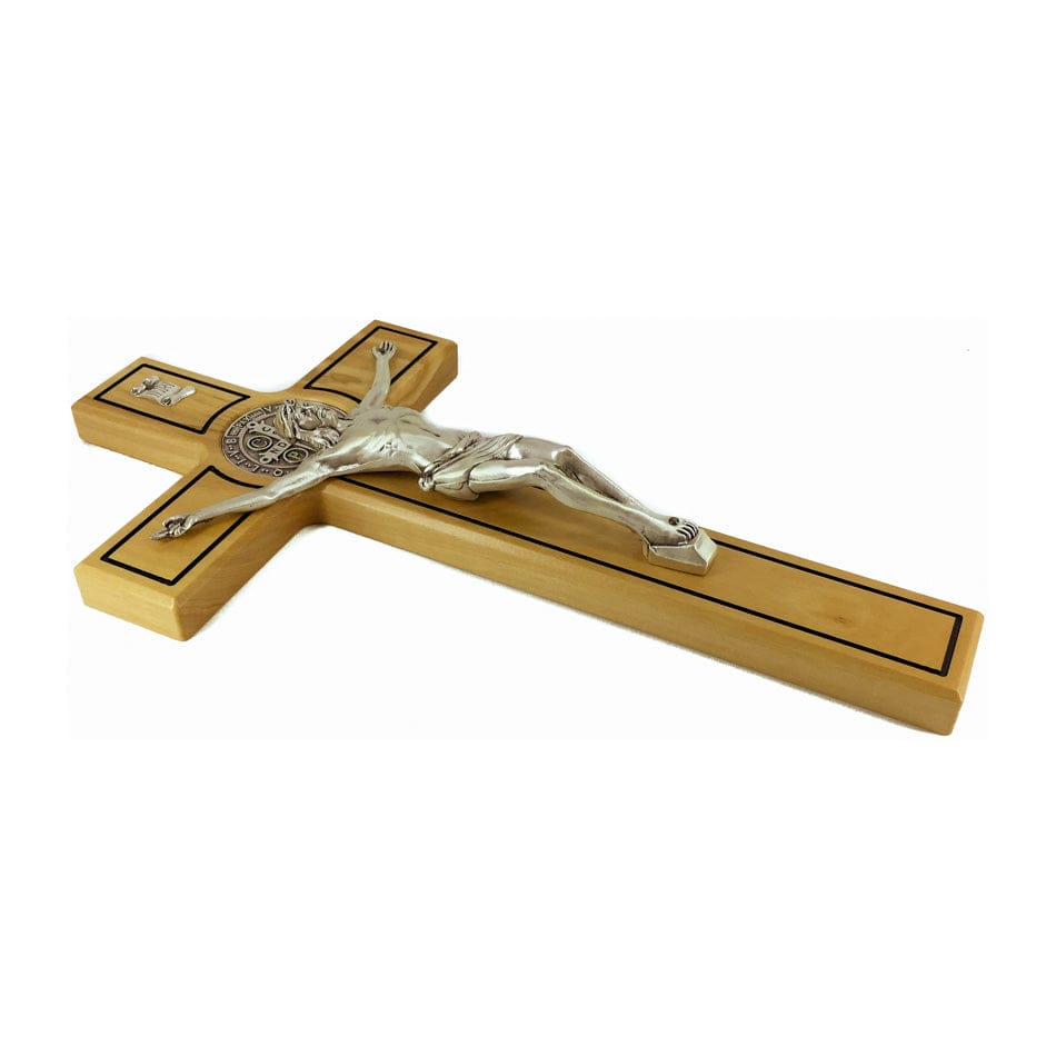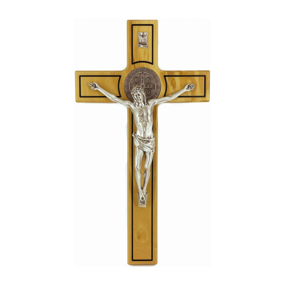 Light Olive Wood St. Benedict Crucifix with Outlines