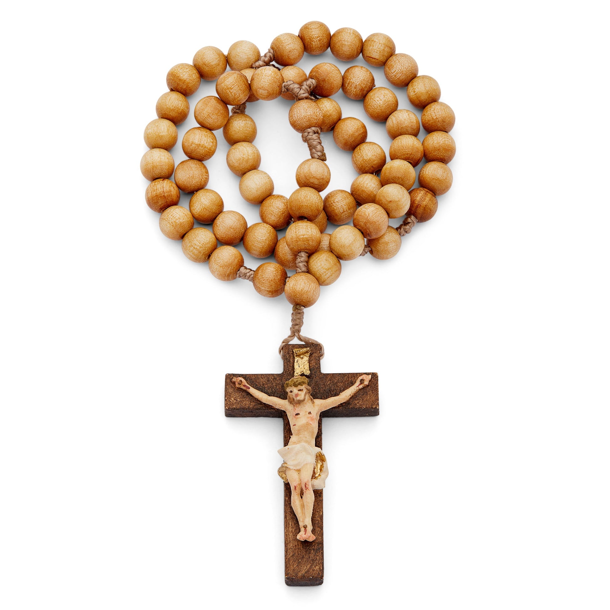 Rosary in rope, the beads are in olive wood, the crucifix is handmade.