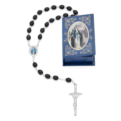 Our Lady of the Miraculous Medal Blue Rosary Case with Wood Rosary