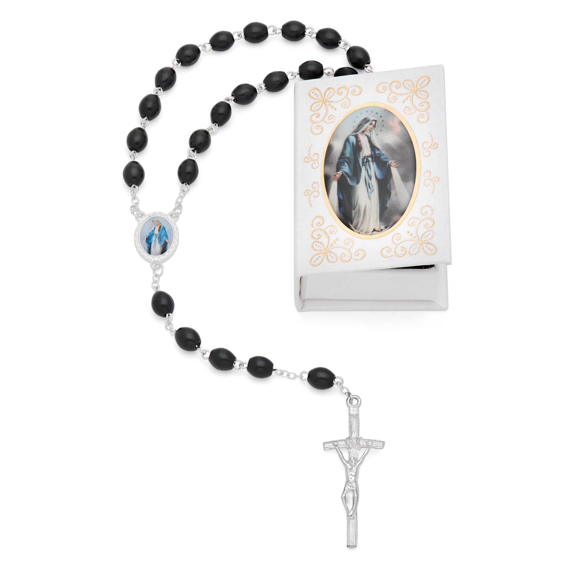 Our Lady of the Miraculous Medal White Rosary Case with Wood Rosary
