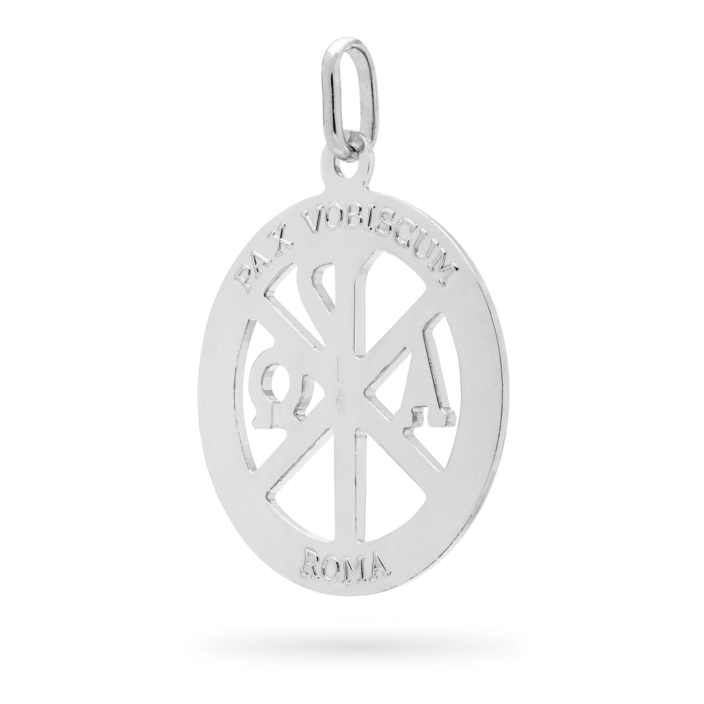 Peace Cross medal pendant made of Sterling Silver 925. Everything begins and ends in Jesùs with Peace. Book of revelation, Jesus said: "I am the Alpha & Omega", the beginning and the End of Life.
