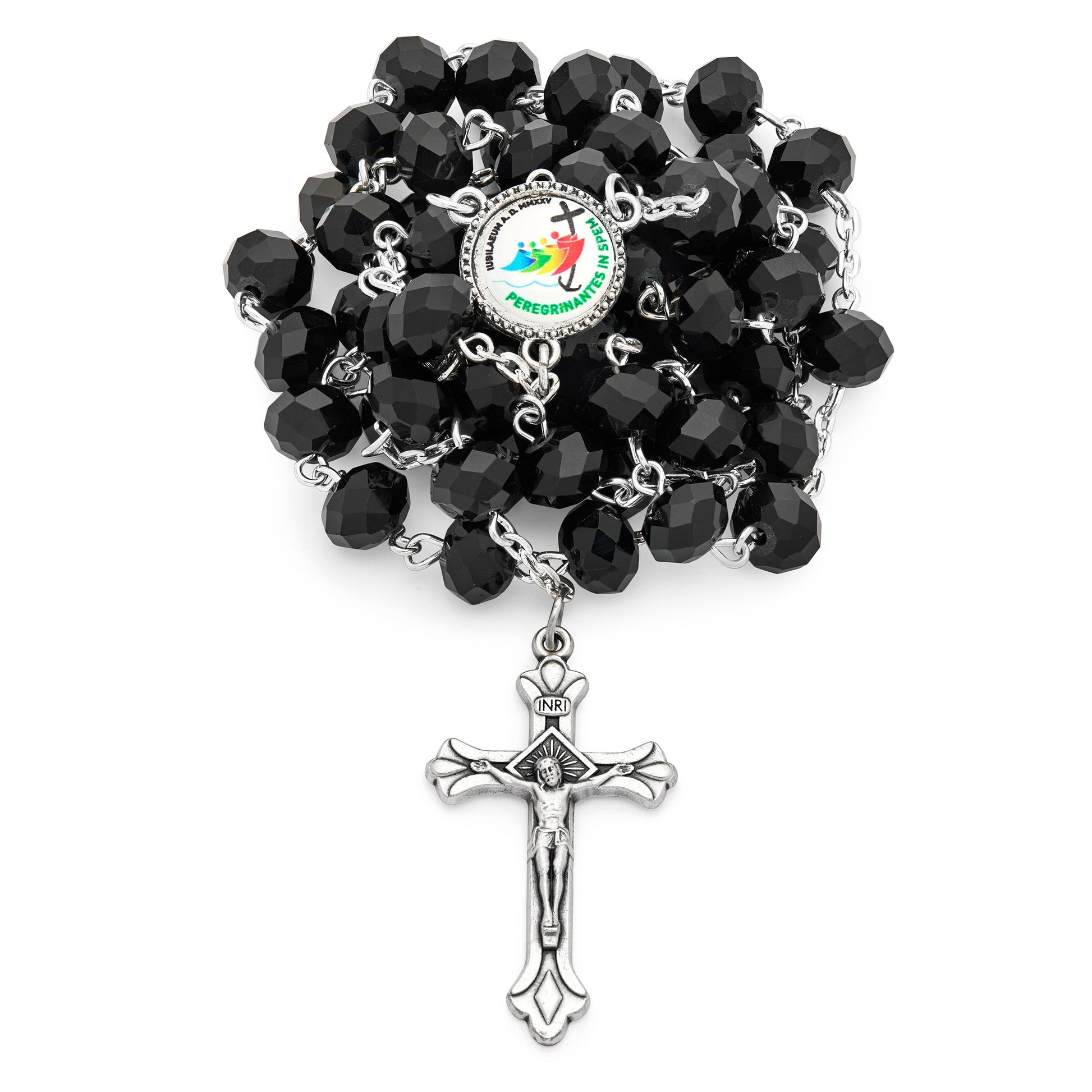Rosary with Black Crystal Beads and Jubilee 2025 Logo