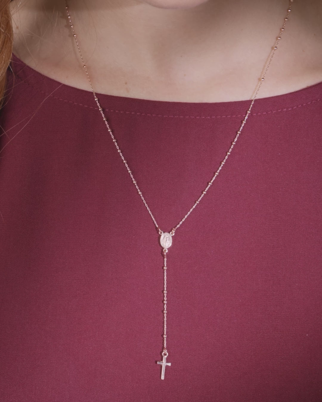 This exquisite rosary, crafted from sterling silver and plated with delicate rose gold, offers a subtle yet elegant touch. The fine, small beads enhance its charm, making it an ideal choice for a meaningful gift or personal prayer. The soft glow of the rose gold adds a modern and graceful feel to this timeless piece.