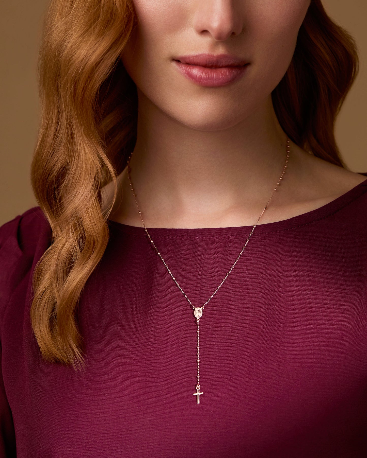 Rose Gold-plated Sterling Silver Rosary with Small Beads