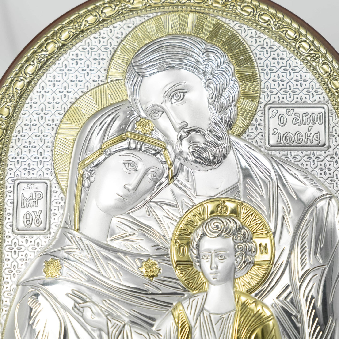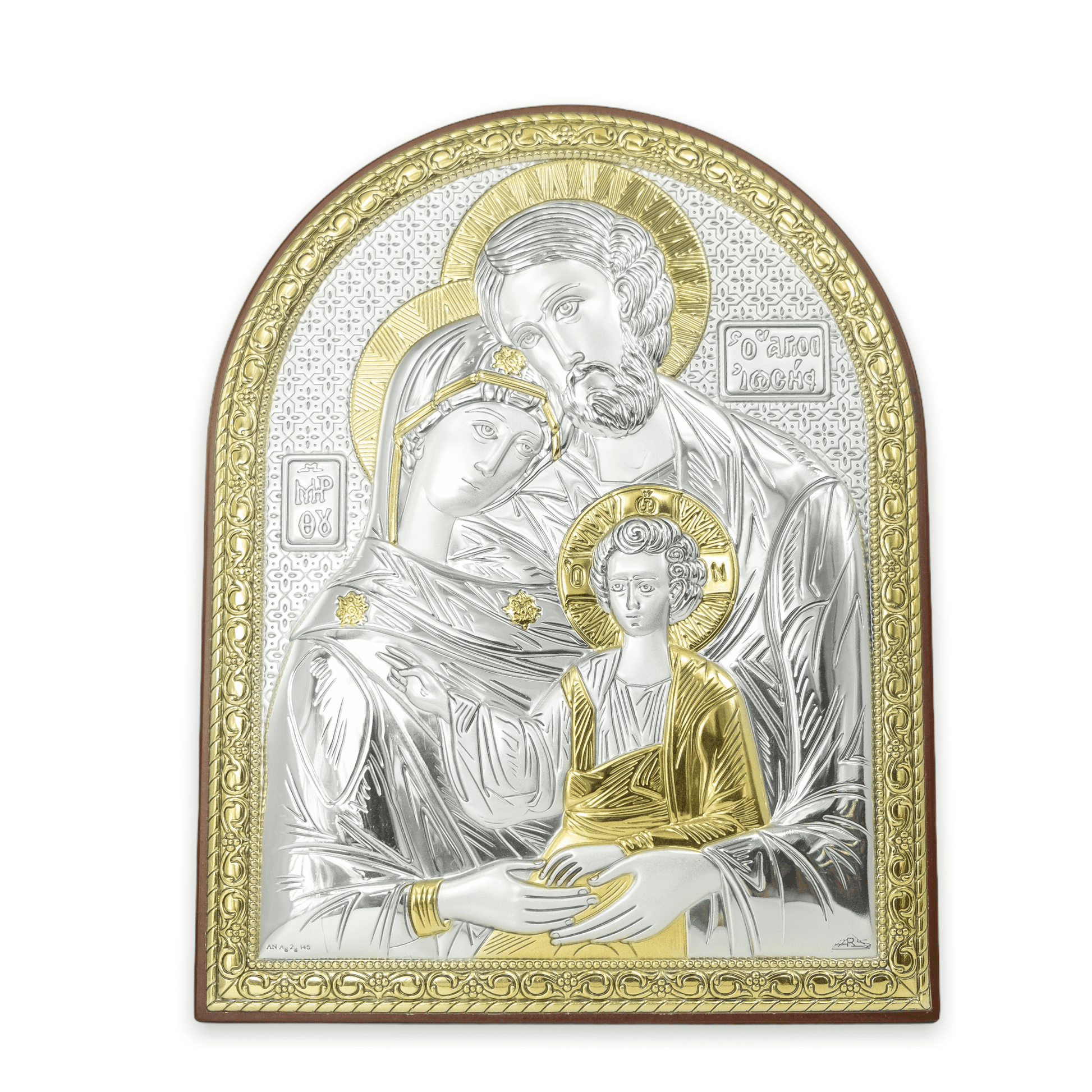 Sacred Family Bilaminated Sterling Silver Painting with Golden Details