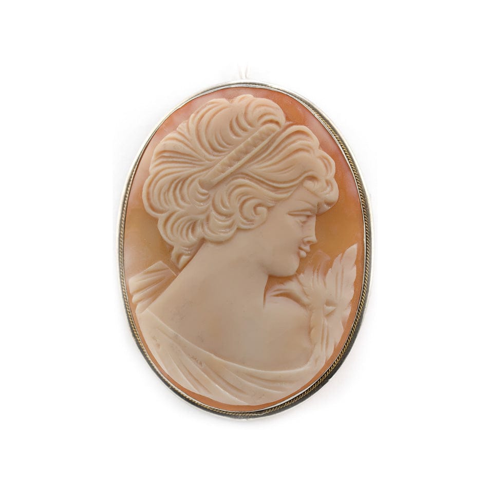 Yellow Gold Brooch and Pendant With Cameo Portraying a Woman and Worked Frame