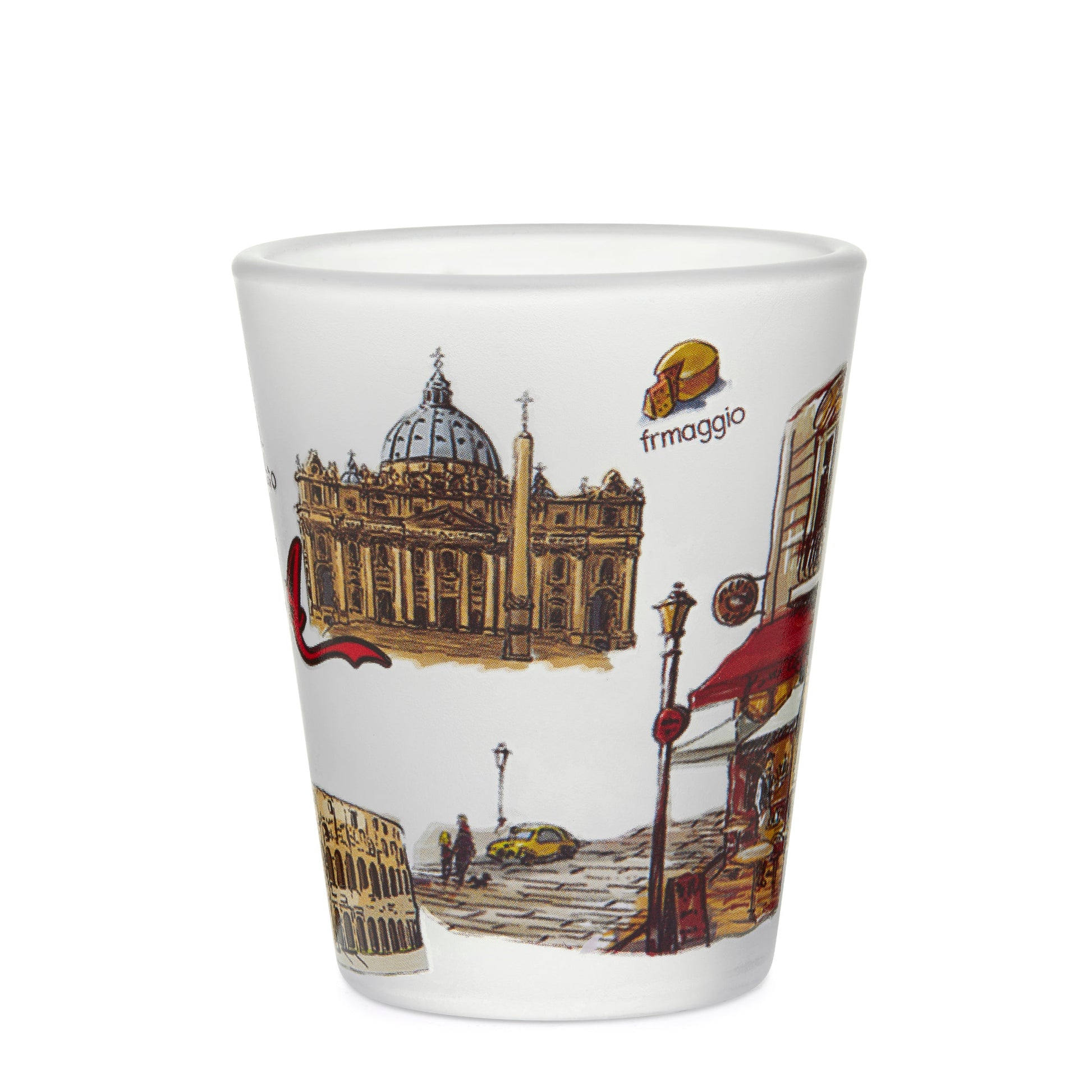 Satin Souvenir Shot Glass with Rome's Monuments and Traditional Foods