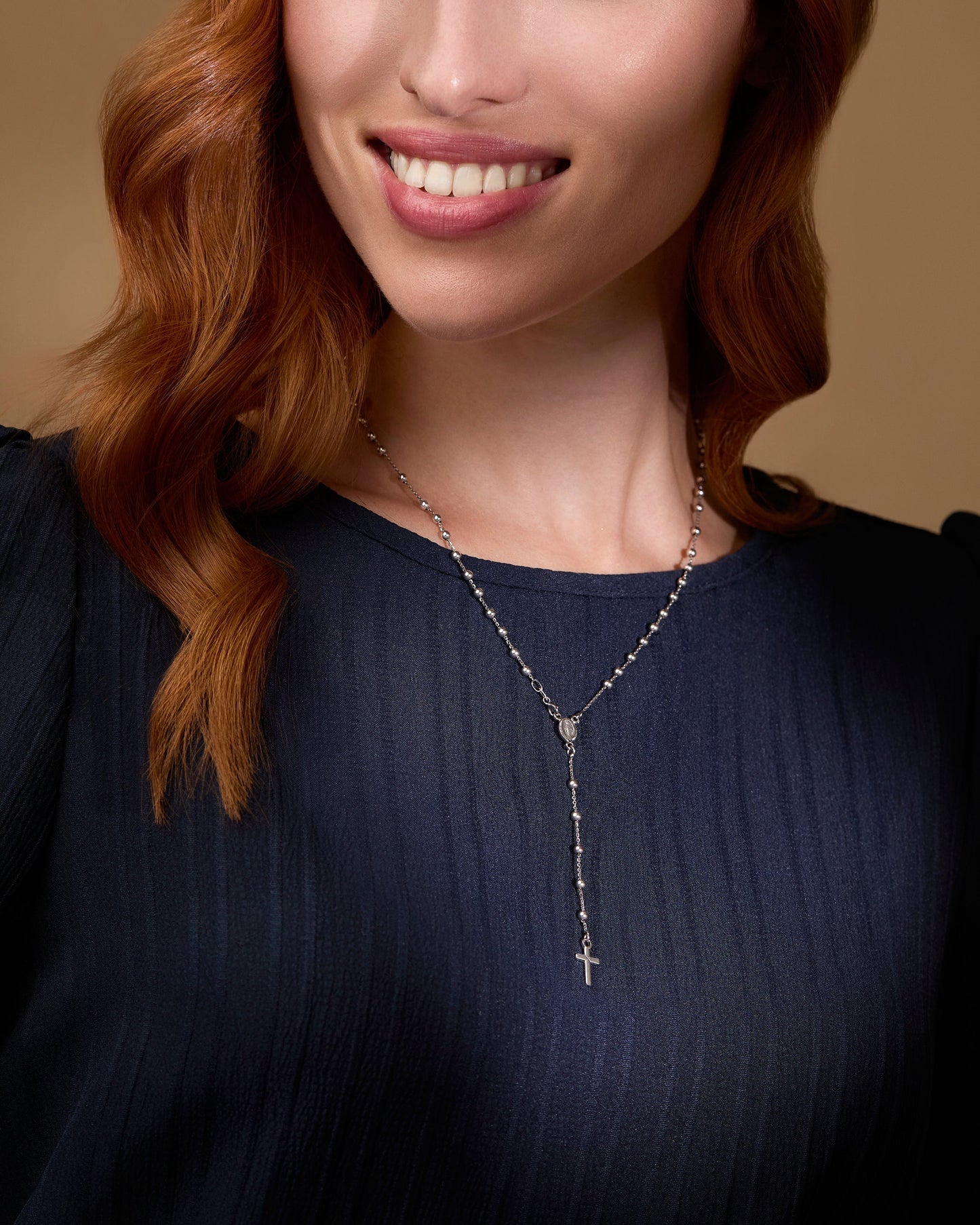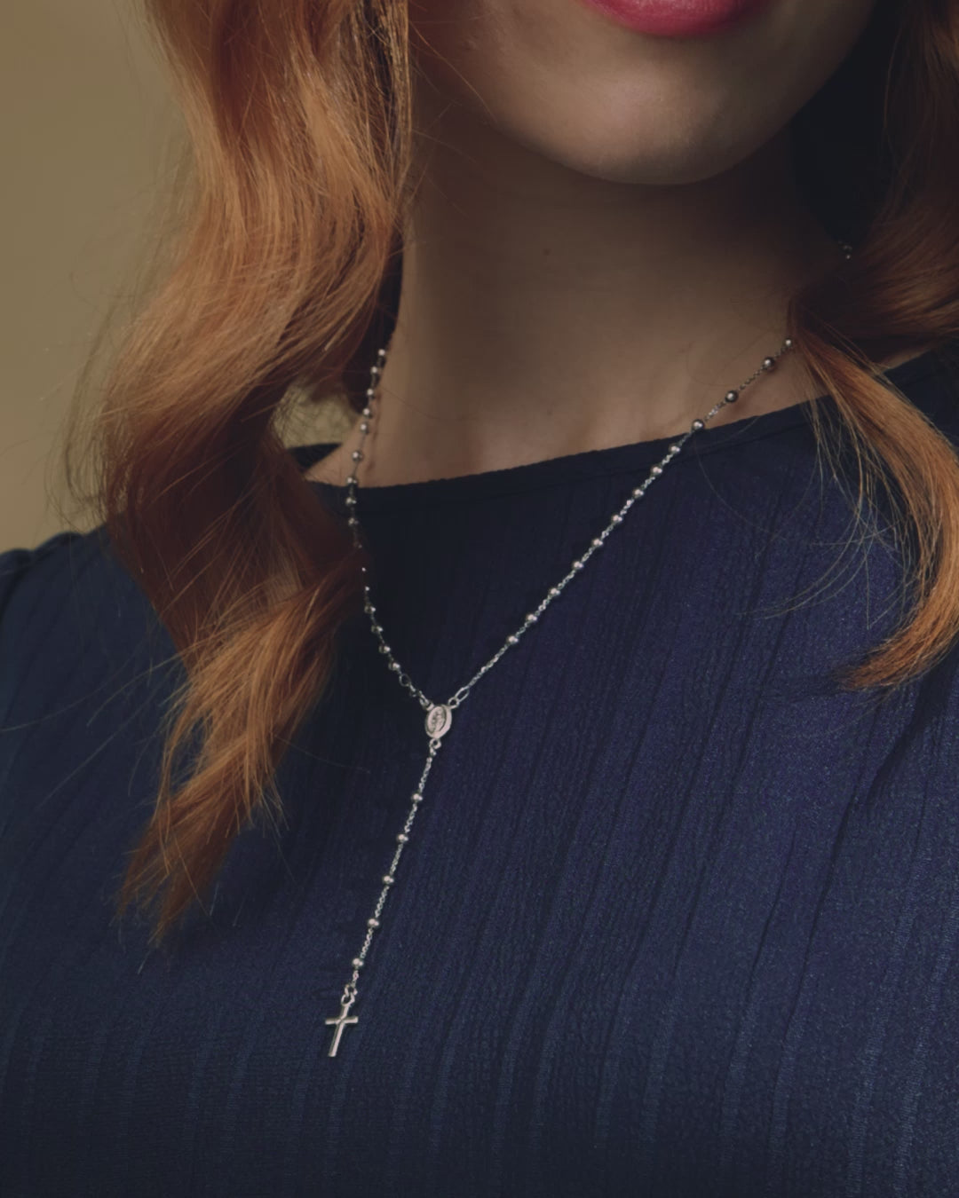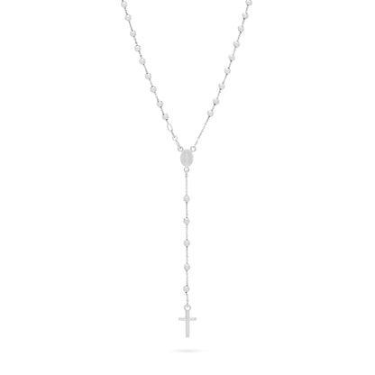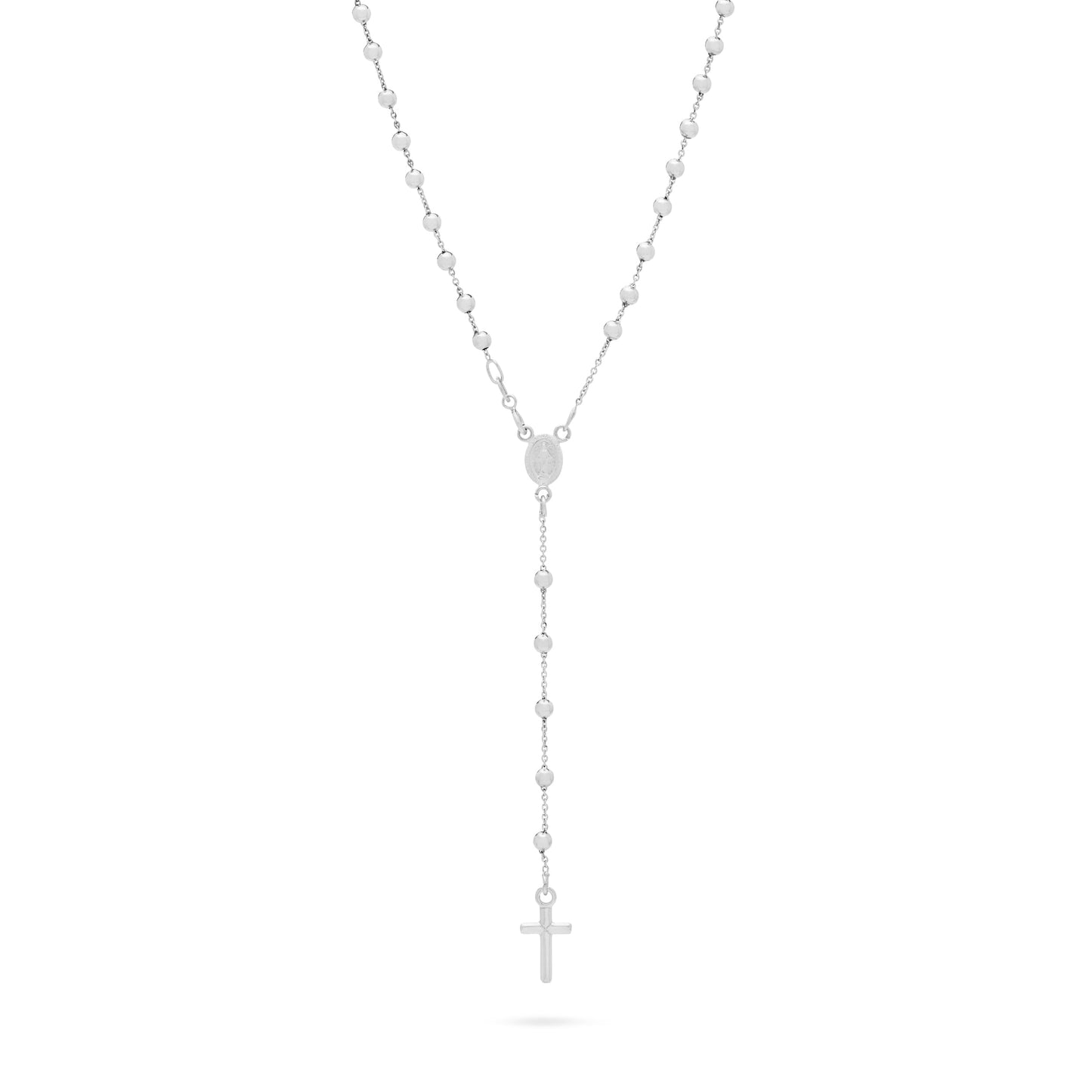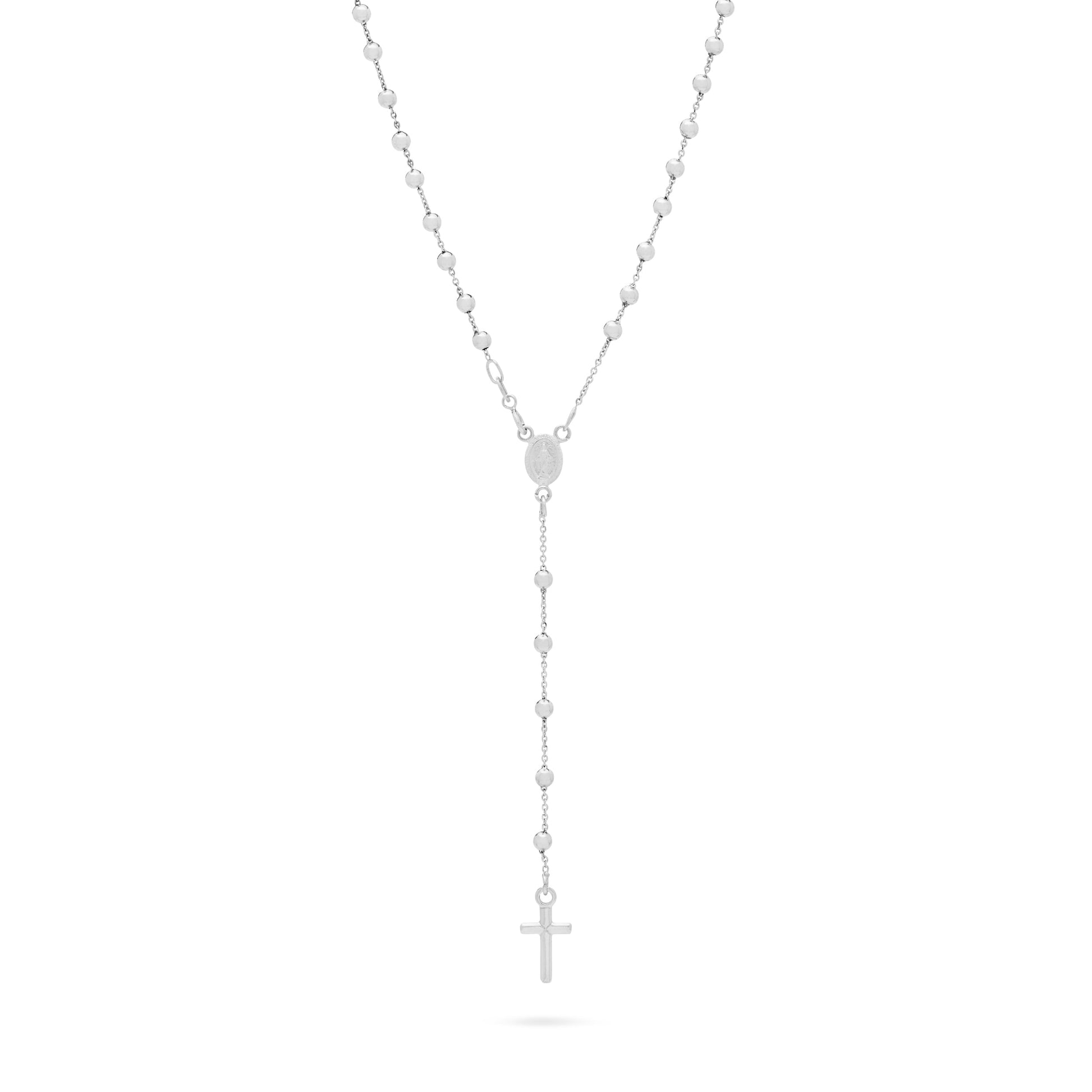 Simple Rosary Beads entirely made in 18kt White Gold. The necklace has a medal depicting Miraculous Medal and simple Cross without Body. The beads measures 3mm.