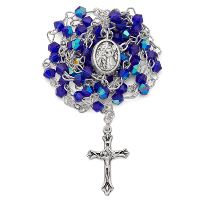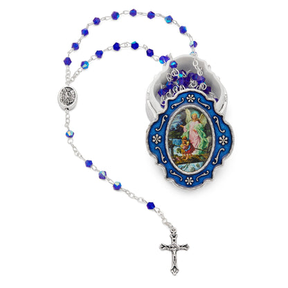 Small Blue Enameled Guardian Angel Rosary Case With Blue Crystal Rosary