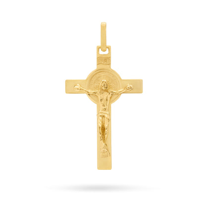 Elevate your style while invoking the protective aura of Saint Benedict with our Small Gold-plated Sterling Silver St. Benedict Crucifix Pendant. This meticulously crafted piece not only exudes elegance but also symbolizes the profound spiritual shield associated with Saint Benedict. Perfectly blending sophistication with divine symbolism, it's a timeless accessory that offers both aesthetic appeal and spiritual significance.