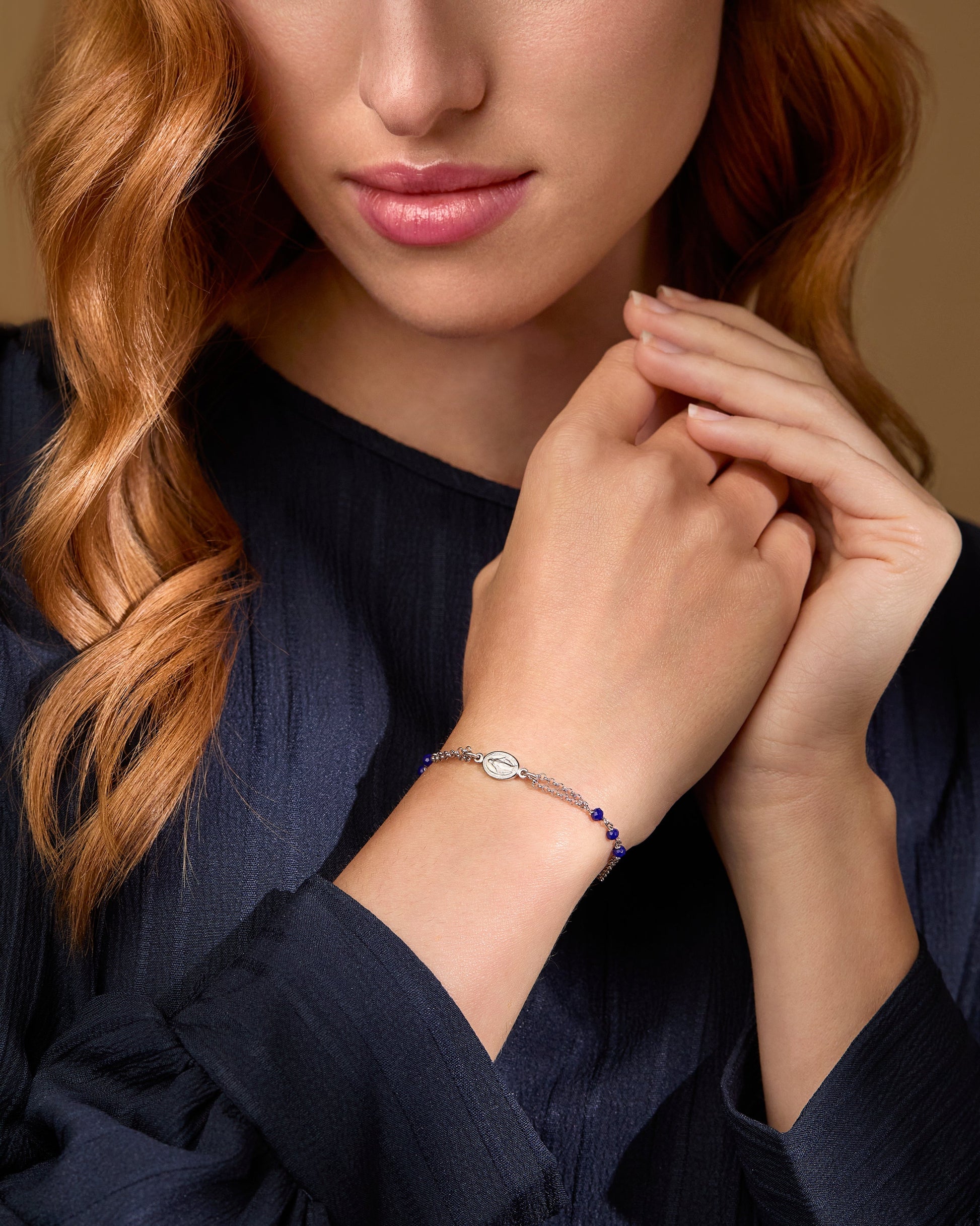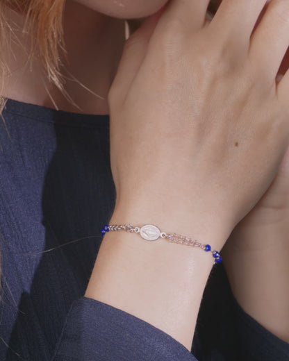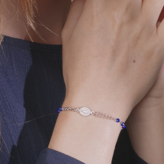 This Sterling Silver Bracelet, featuring exquisite blue crystal beads, is designed to capture both elegance and spiritual depth. The blue crystals symbolize tranquility, peace, and protection, making this bracelet more than just an accessory. It includes a beautifully detailed Miraculous Medal and a cross, representing faith and devotion. This bracelet is perfect for daily wear or special occasions, offering both style and meaningful significance.