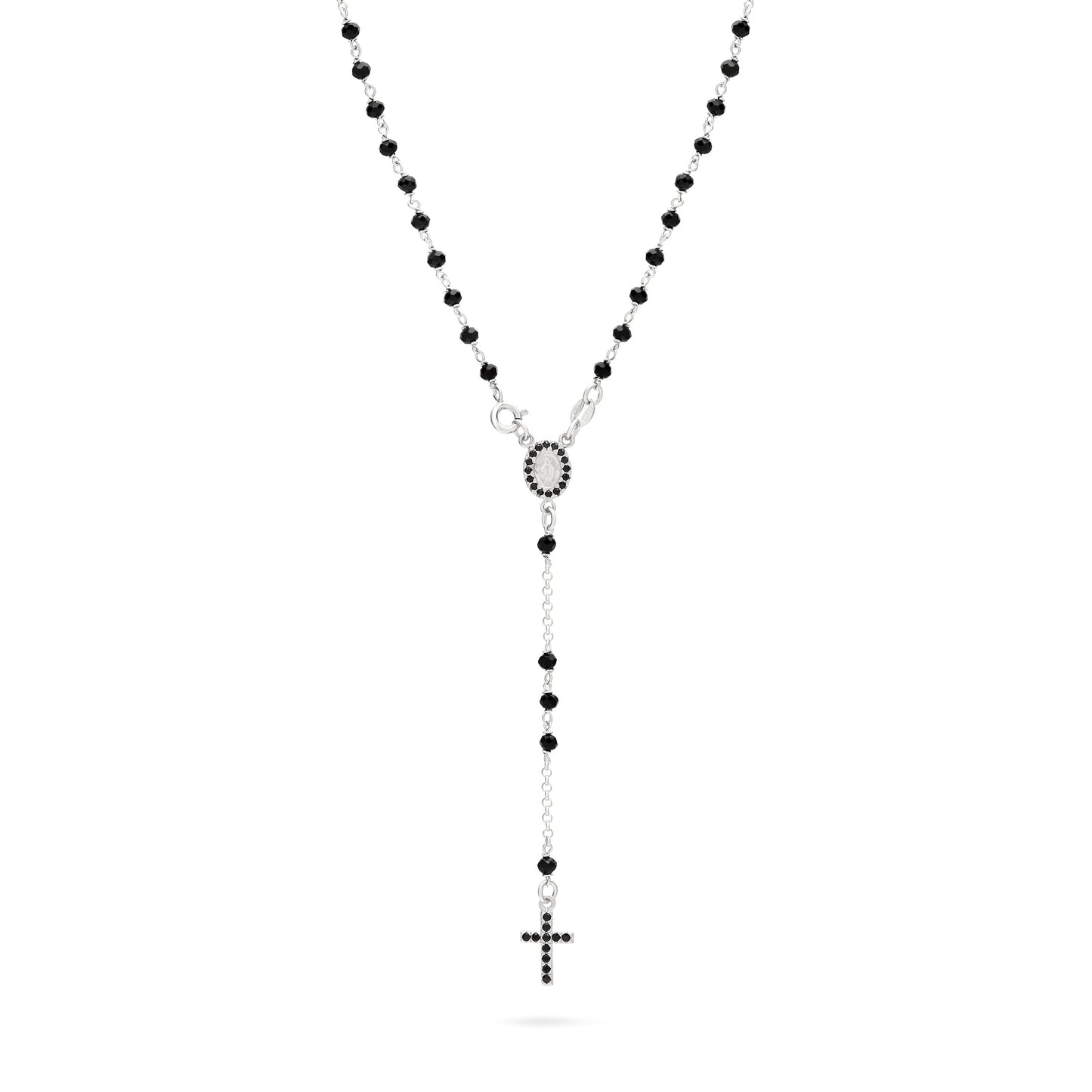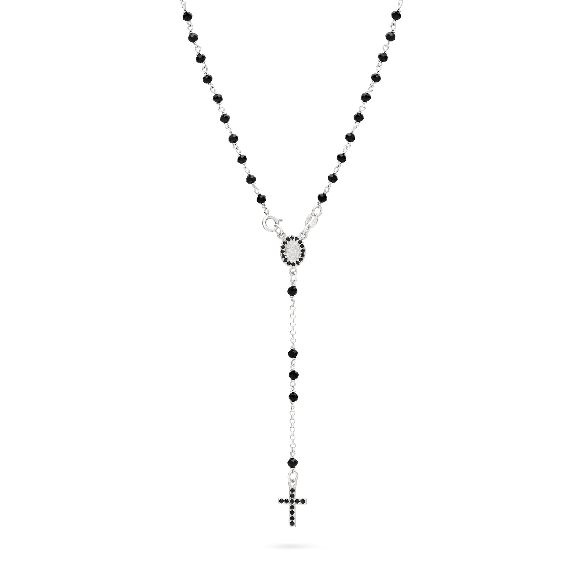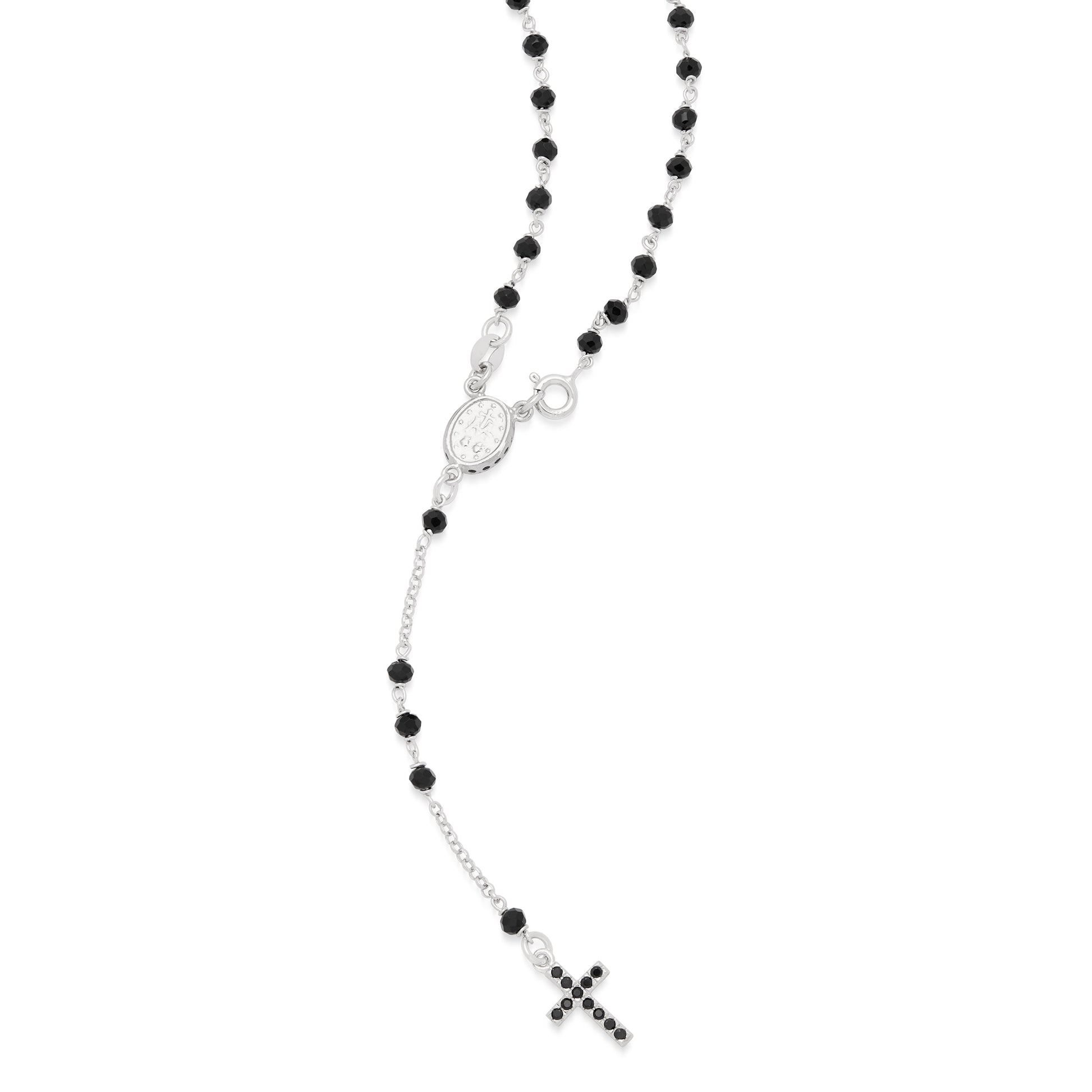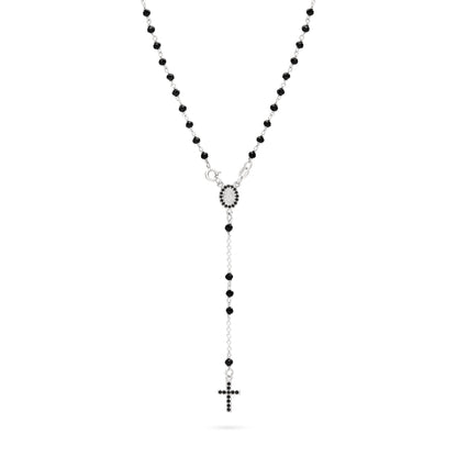 Sterling Silver Rosary with Black Beads and Black Cubic Zirconia