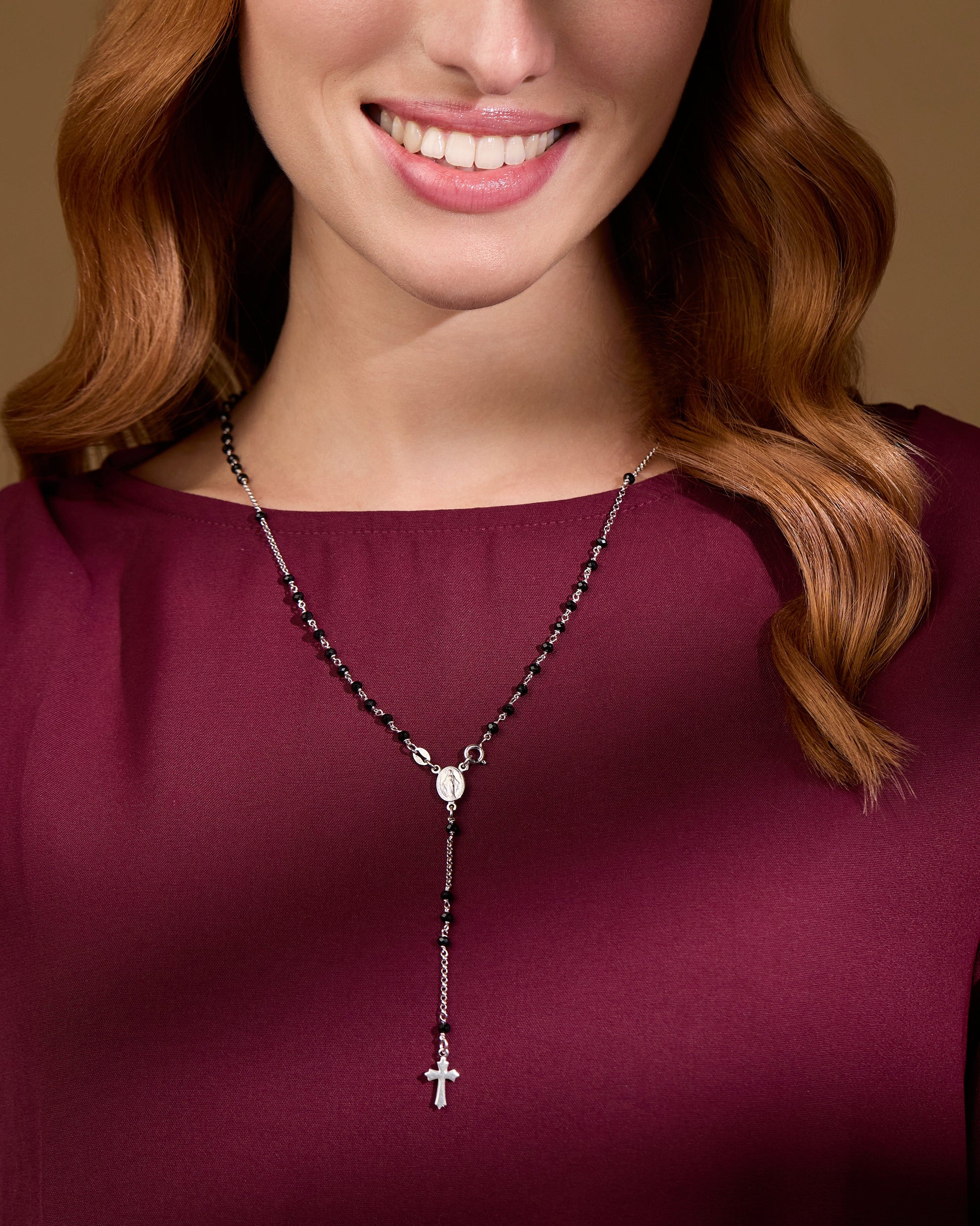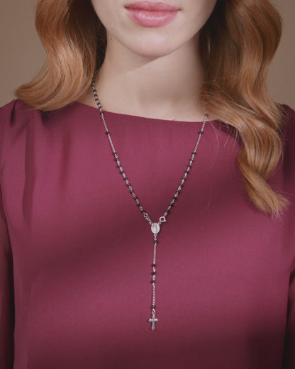 This sophisticated rosary is crafted from high-quality sterling silver and features sleek black beads paired with a beautifully designed trefoil cross. The unique trefoil design adds symbolic depth, representing the Holy Trinity, while the combination of silver and black creates a striking yet elegant contrast. Perfect for personal devotion or as a meaningful gift.