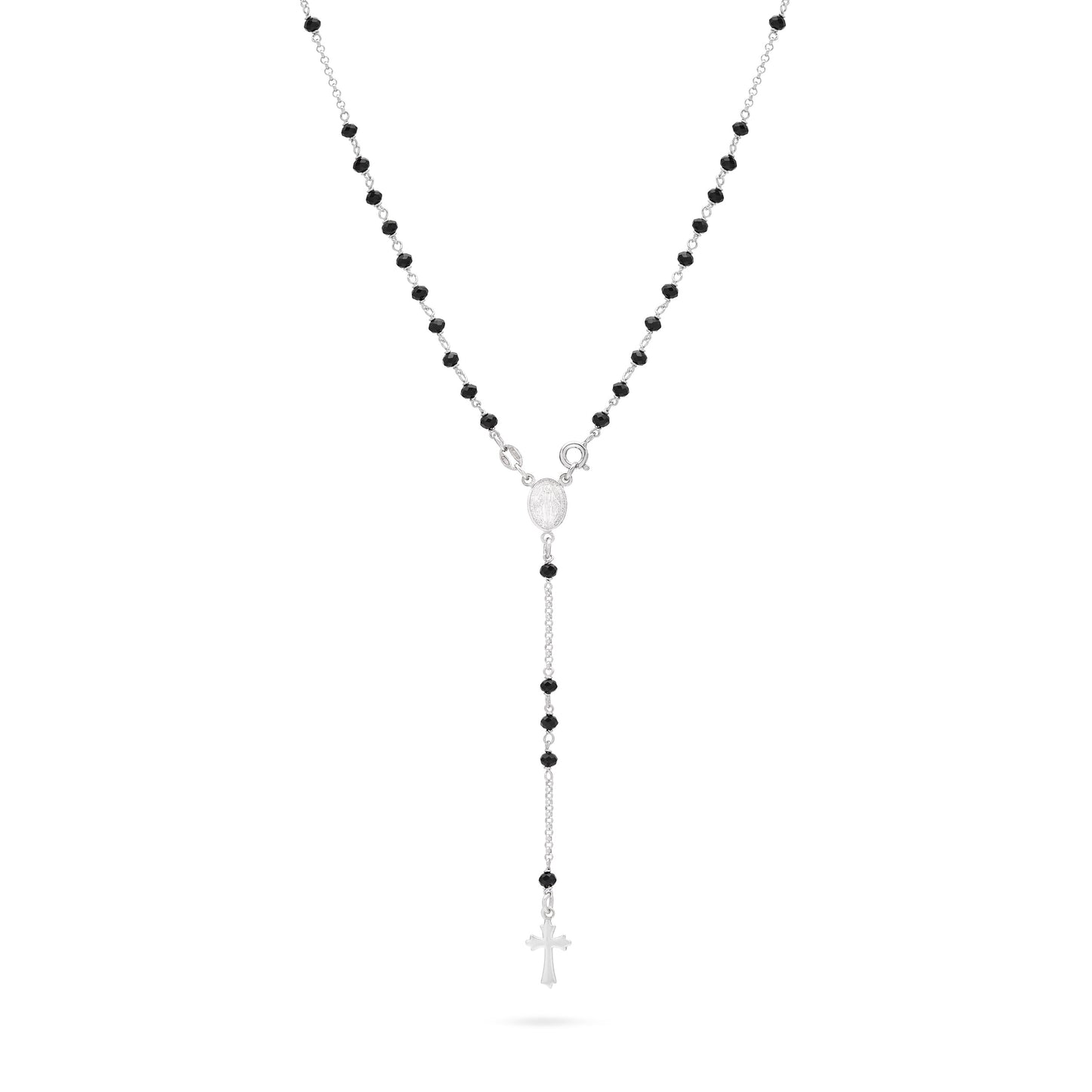 Sterling Silver Rosary with Black Beads and Trefoil Cross