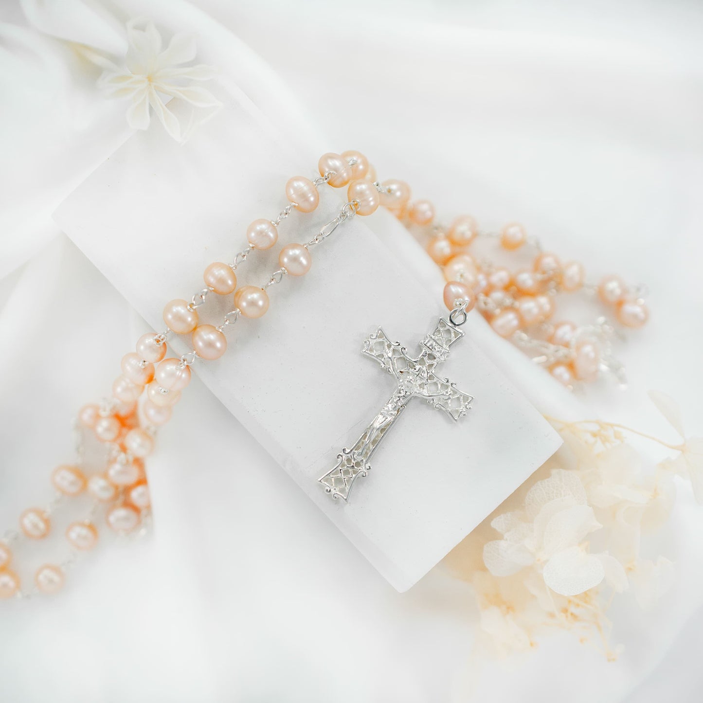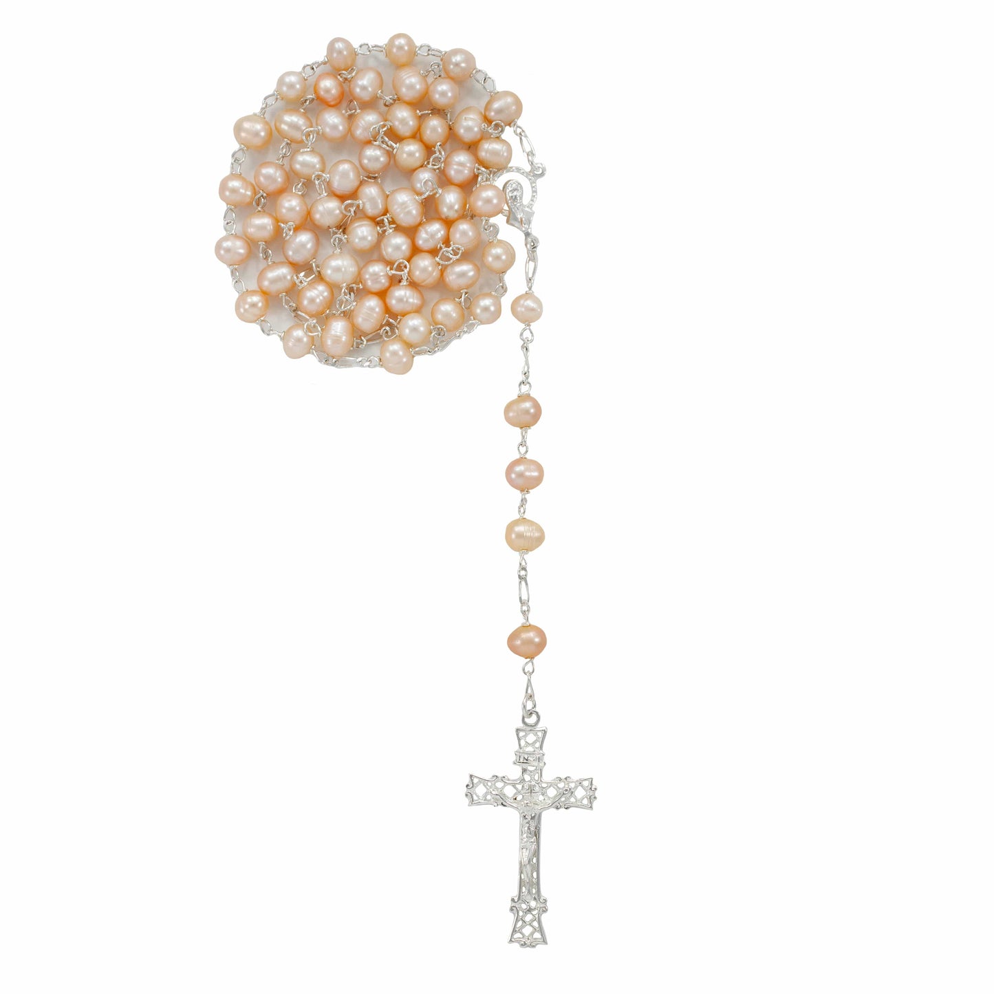 Crafted in Italy using top quality Sterling Silver 925. While the large and irregular Lake Pearl beads lend great elegance and originality to this rosary, its Miraculous Medal makes it a powerful tool of prayer.