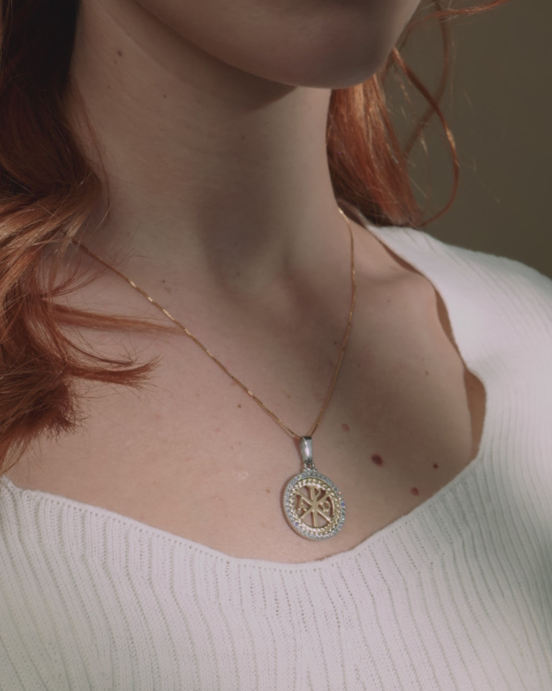 Two-Tone Peace Cross White and Yellow Gold