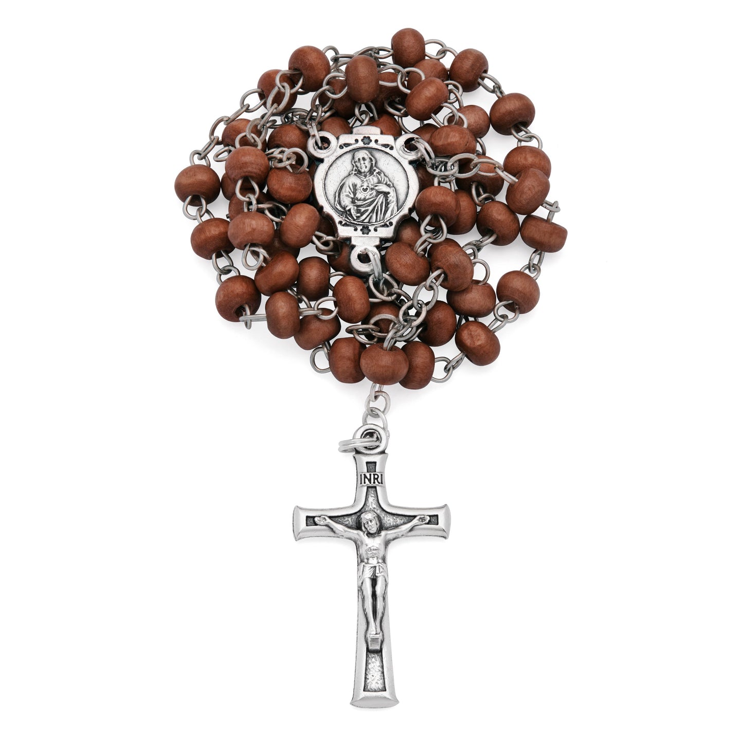 Olive Wood Colored Our Lady of the Miraculous Medal Rosary Case With Wood Rosary