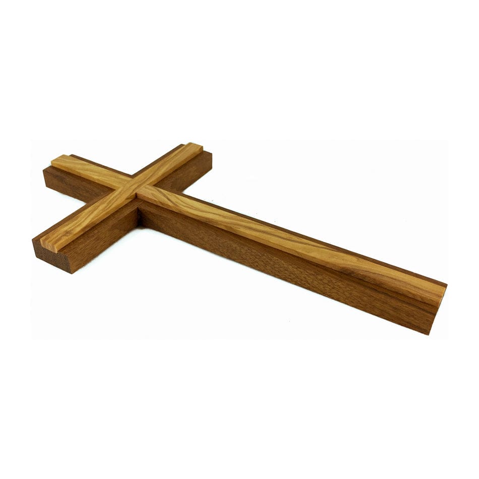Wooden cross for the wall. Crafted from high-quality walnut wood, this cross features a beautiful light inlay that adds a touch of warmth and elegance to any room. It's a gorgeous and timeless addition to your home decor that also serves as a constant reminder of your faith.