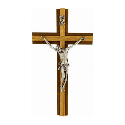 This nice Crucifix is made in Walnut wood with clearer walnut inlay. Made in the North of Italy, its Corpus is entirely made in Brass silver color finished.