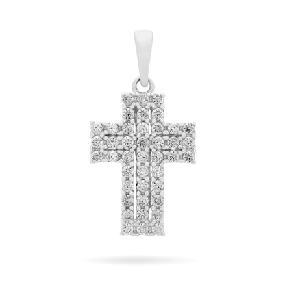 White Gold Cross Pendant Covered With Cubic Zirconia