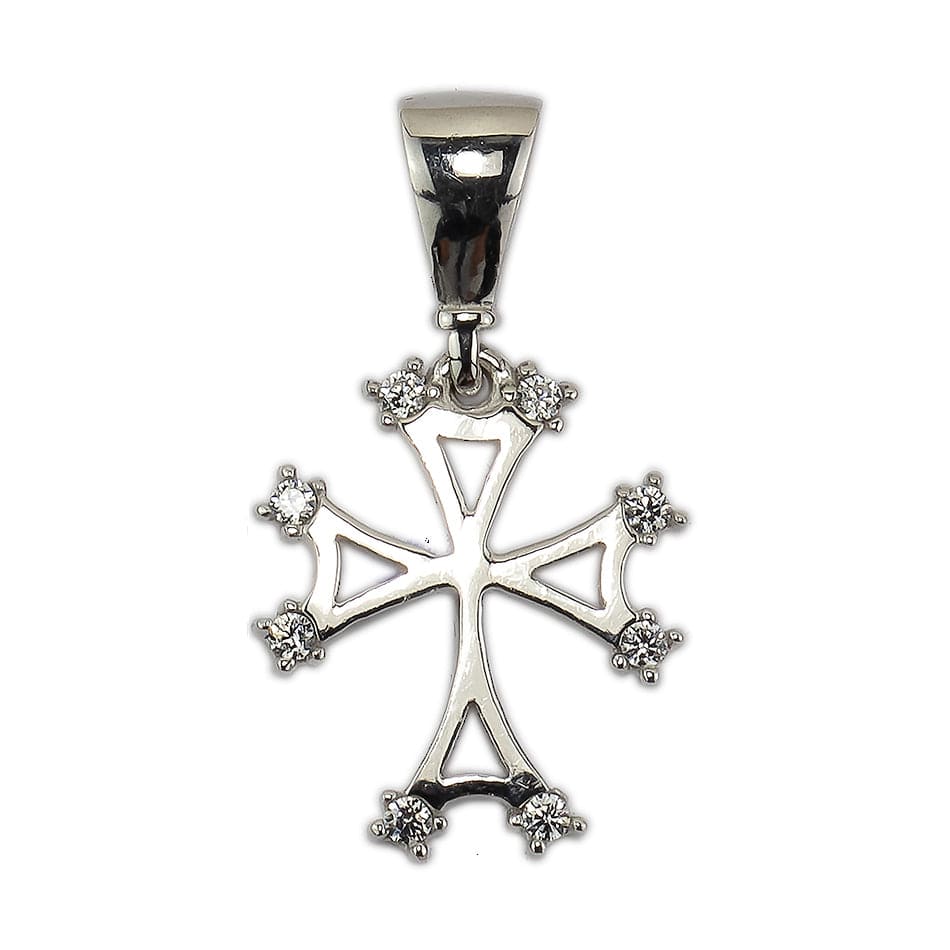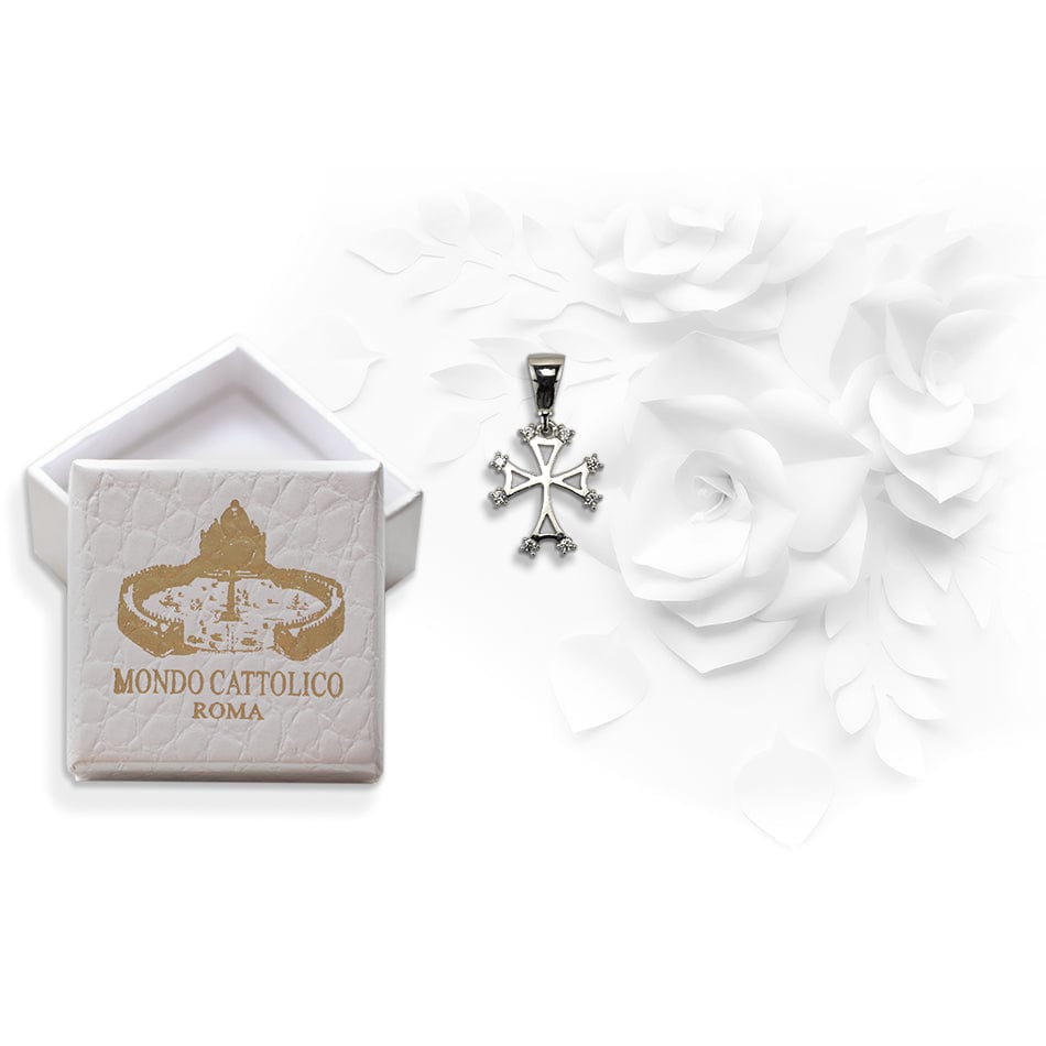 18kt White Gold Squared Pendant with Zircons.