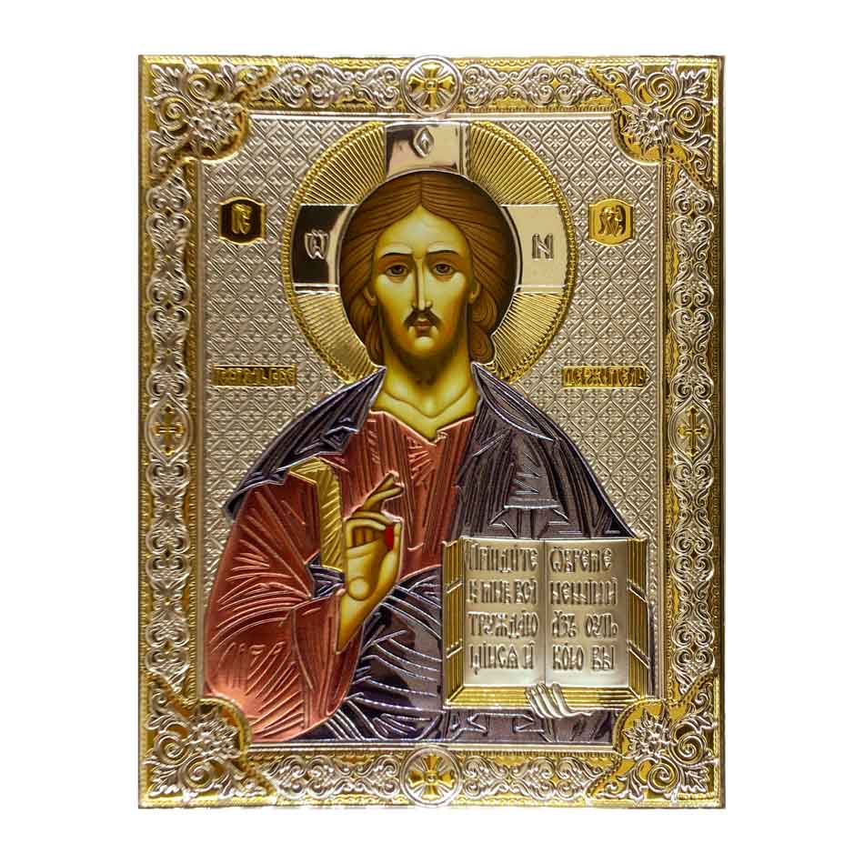 Wooden Icon with Colorful Silver Plaque of Jesus Christ