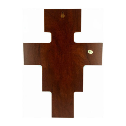 Wooden San Damiano Crucifix with Colorful Bilaminate Sterling Silver Plaque