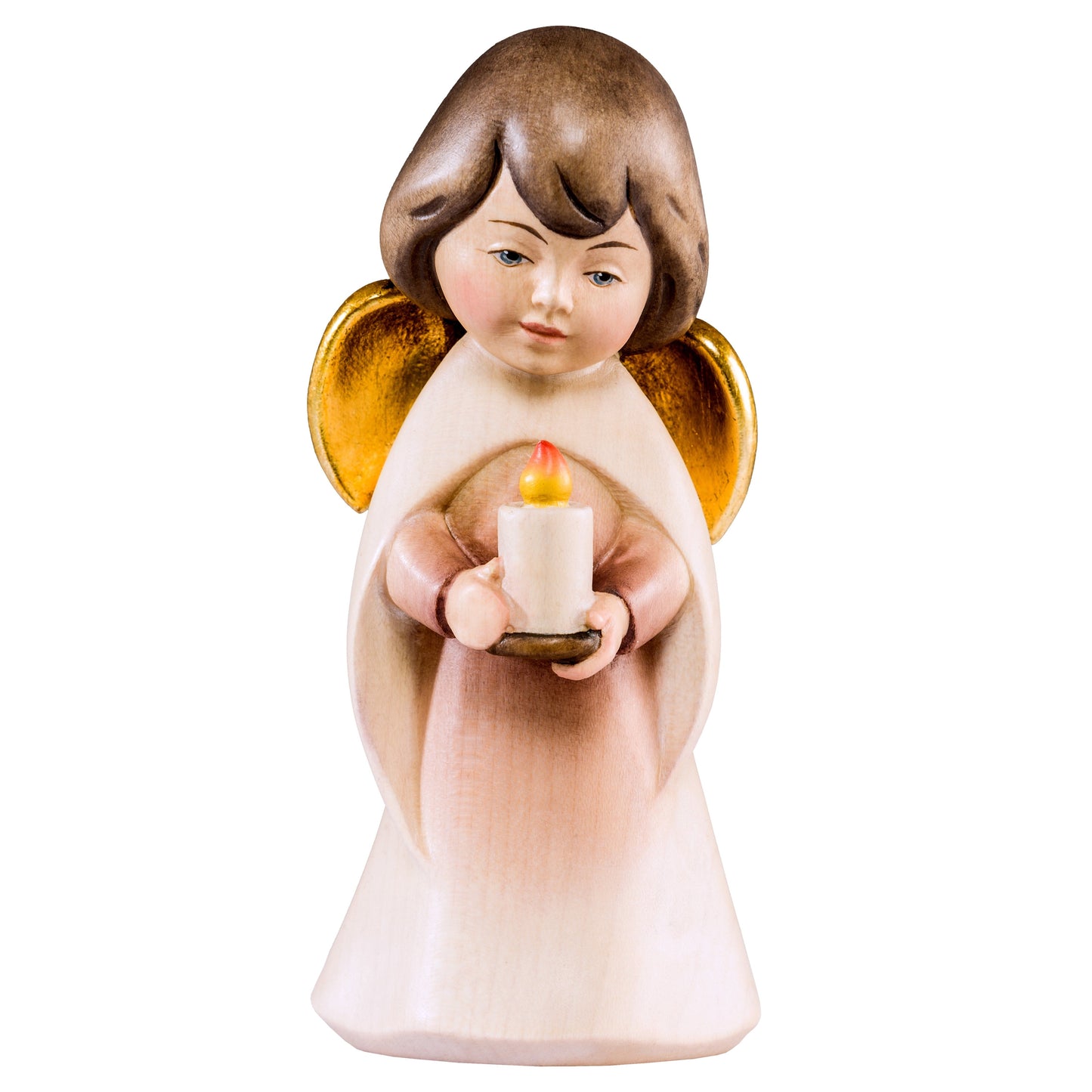 Wooden statue of Dream angel with candle. This beautiful statue was entirely handmade in Val Gardena, in the Alpine region of Alto Adige located at the far north of the Italian peninsula.