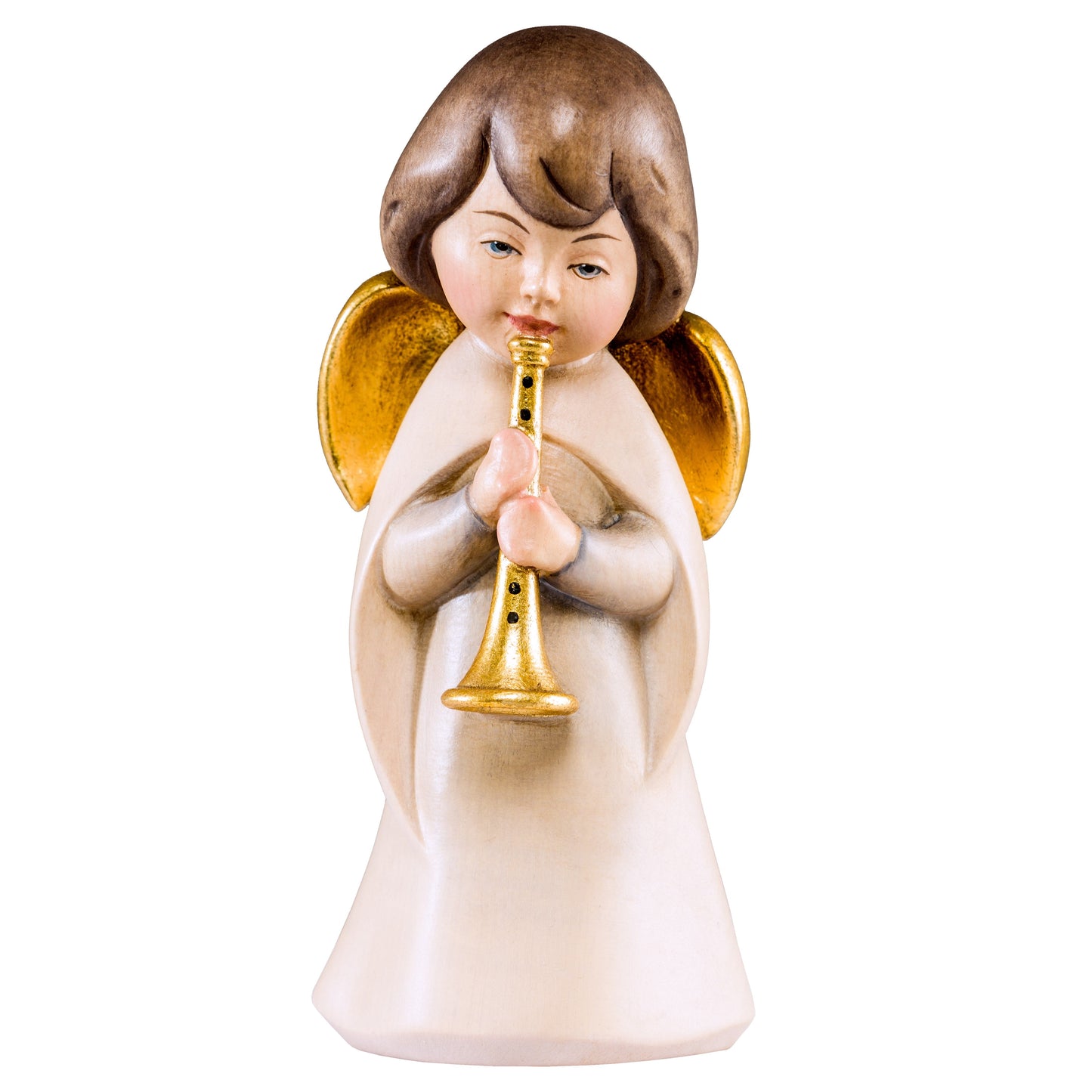 Wooden statue of Dream angel with trombone. Crafted entirely by hand in Val Gardena, this exquisite statue originates from the Alpine region of Alto Adige, nestled at the northernmost tip of the Italian peninsula, adjacent to Austria.