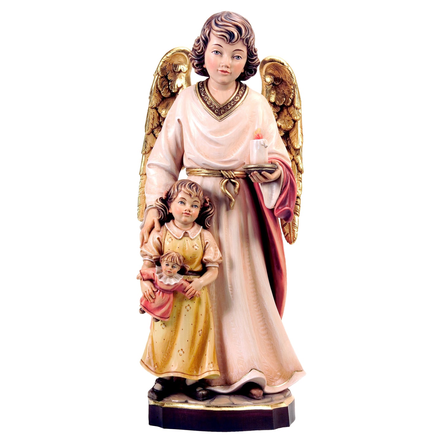 Wooden statue of Guardian angel with girl. This beautiful statue was entirely handmade in Val Gardena, in the Alpine region of Alto Adige located at the far north of the Italian peninsula.