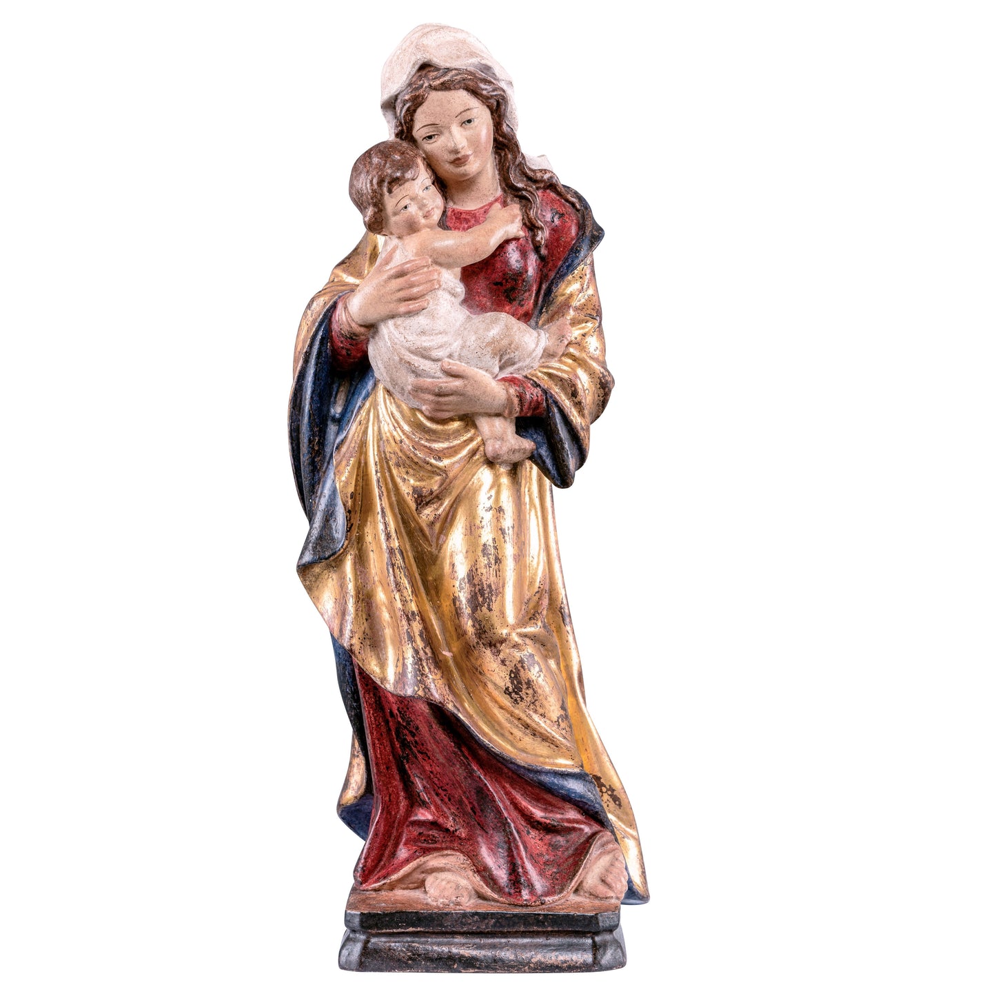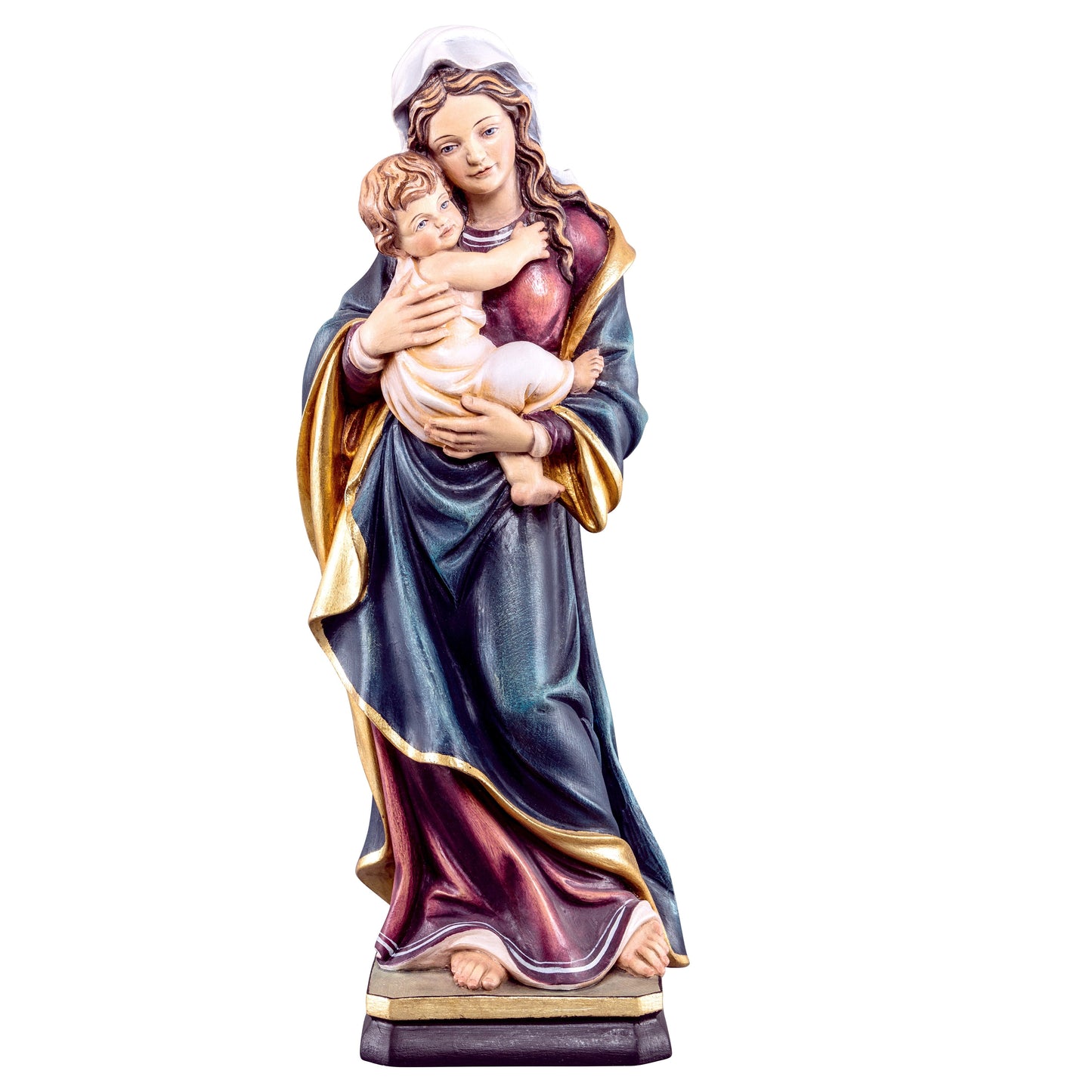 Wooden statue of Madonna of home. This beautiful statue was entirely handmade in Val Gardena, in the Alpine region of Alto Adige located at the far north of the Italian peninsula.