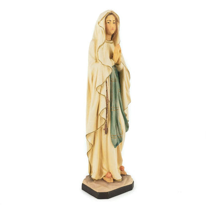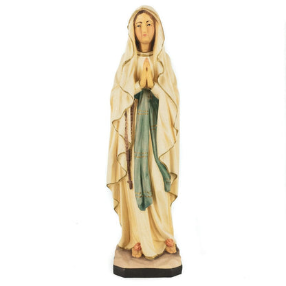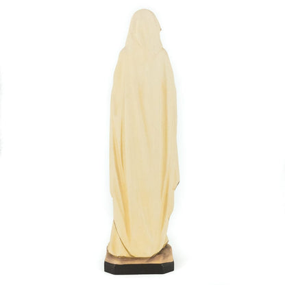 Hand-carved from solid wood, this stunning statue of Our Lady of the Rosary brings peace and grace to any space. Honor the Virgin Mary and deepen your devotion to the rosary with this beautifully crafted piece, perfect for prayer or home decor.