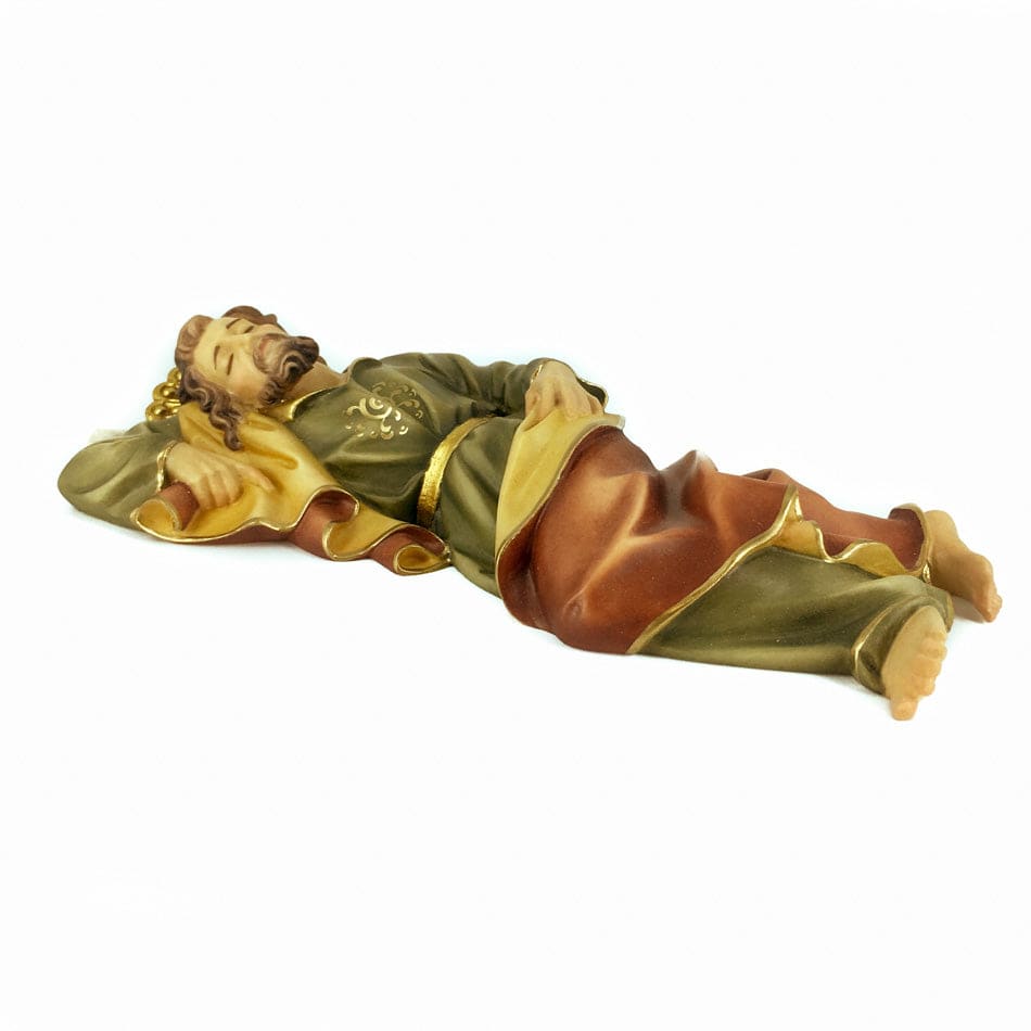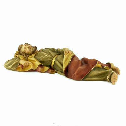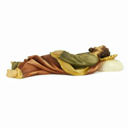 Discover the exquisite Sleeping Saint Joseph ‘The Dreamer’ statue, meticulously wood-carved in the North of Italy. This amazing wooden statue beautifully depicts Saint Joseph, known as the Dreamer, a figure celebrated for his simplicity and ability to interpret dreams as narrated in the Gospel. Celebrated by Pope Francis on March 2017 during the Solemn Mass for Saint Joseph’s Day, Saint Joseph is portrayed as a hidden man of silence who embraced his divine responsibility through dreams. This Italian craftsmanship masterpiece serves not only as a piece of religious art but also as a symbol of silent acceptance of God’s will, making it a perfect addition to any collection of religious statues or spiritual home decor. Ideal for those who admire Gospel-inspired art or seek a meaningful representation of the Virgin Mary’s spouse, this statue embodies the spiritual legacy and the paternity of God, as accepted and carried on in silence by Saint Joseph.