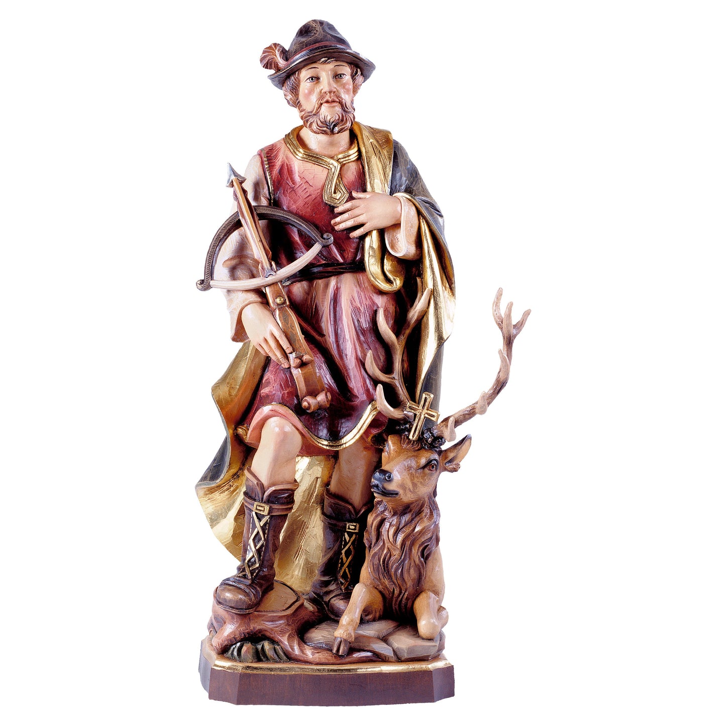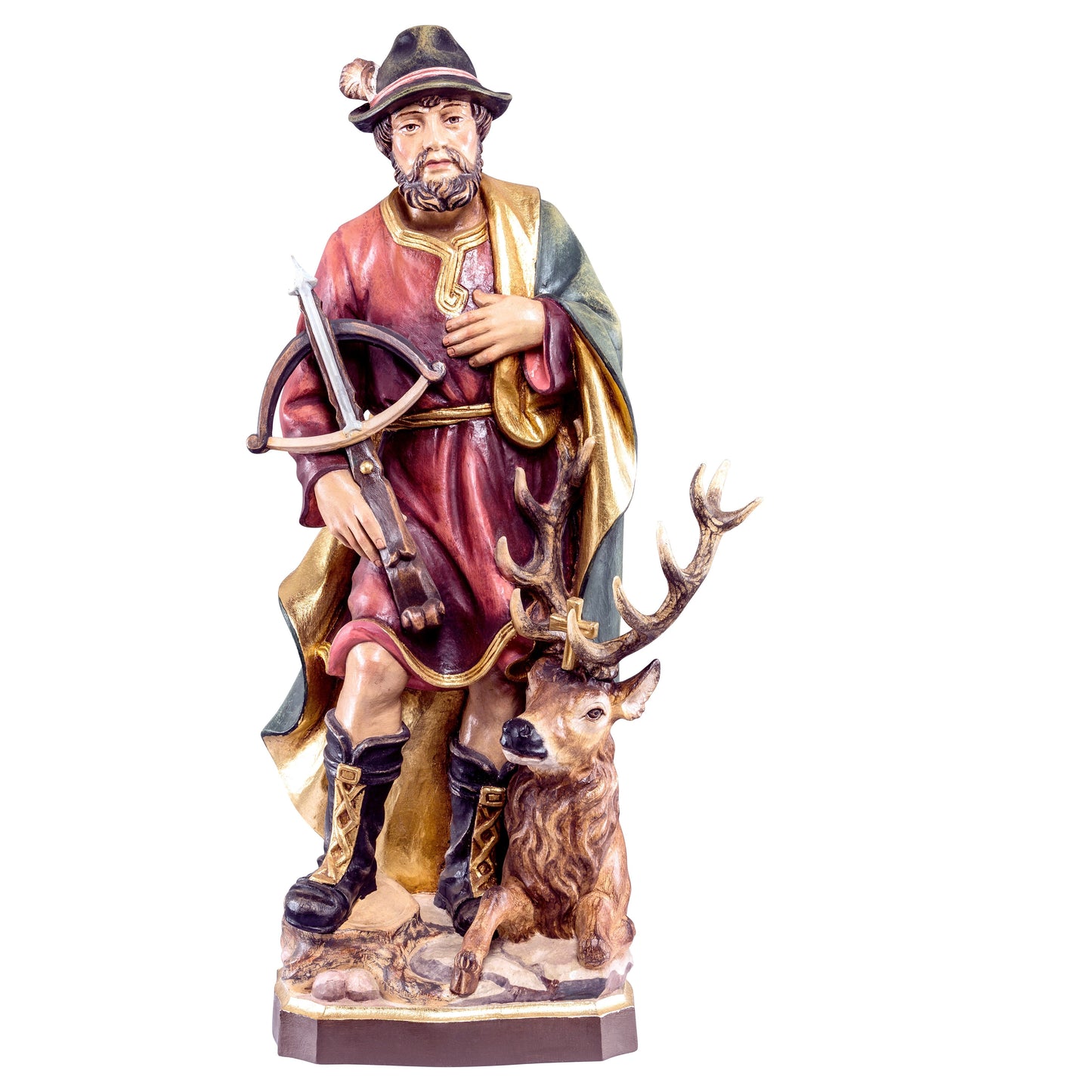 Wooden Statue of St. Hubertus. Crafted entirely by hand in Val Gardena, this exquisite statue originates from the Alpine region of Alto Adige, nestled at the northernmost tip of the Italian peninsula, adjacent to Austria.