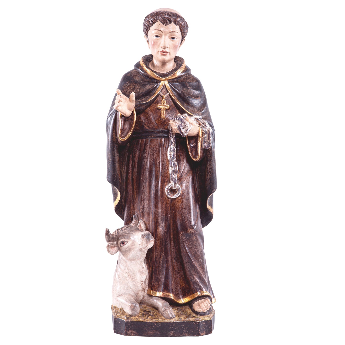 Wooden statue of St. Leonard. Crafted entirely by hand in Val Gardena, this splendid statue comes from the Alpine territory of Alto Adige, positioned at the northernmost part of the Italian peninsula, bordering Austria.