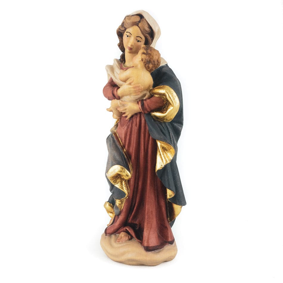 Wooden Statue reproduction Regensburg Virgin. This beautiful representation of the Virgin present on the left Altar of Regensburg's Cathedral has been handcrafted and handpainted in the North of Italy. Some details, not present in the original statue, has been replaced by new one, such as the White Veil. The Artisan replacing the Crown present in the original Statue with the White Veil remembers us Virgin's Mary meekness and humility as well as her obedience to Jesus Christ. The Baroque Style gives to the Sculpture the Natural Tenderness which typical of the Relationship between Mother and Son.