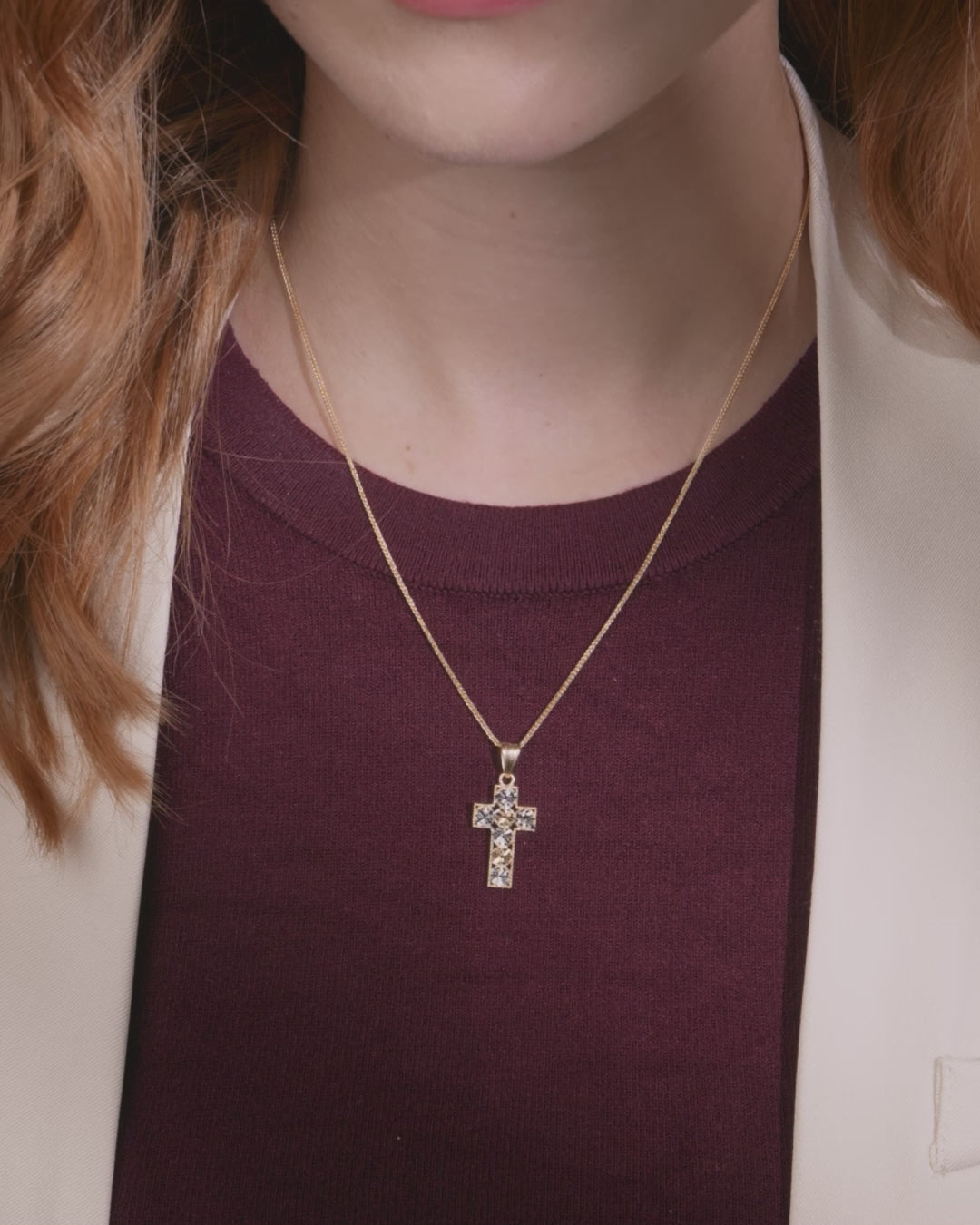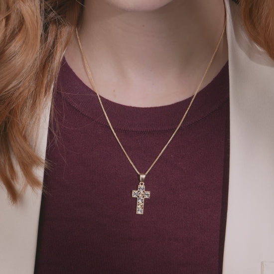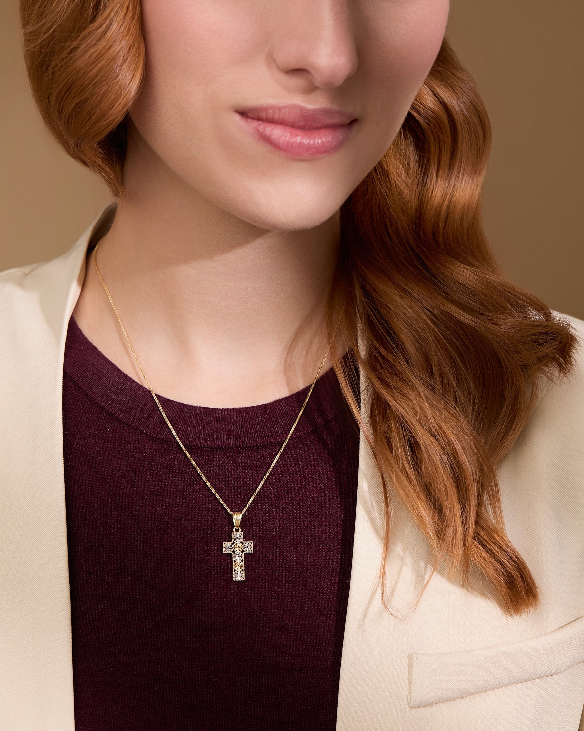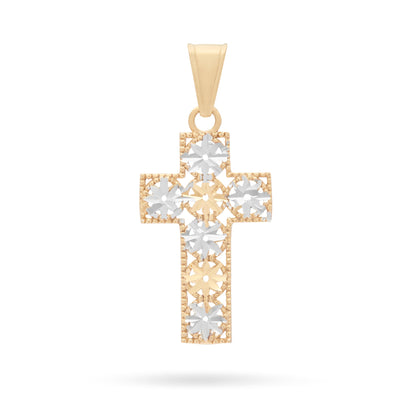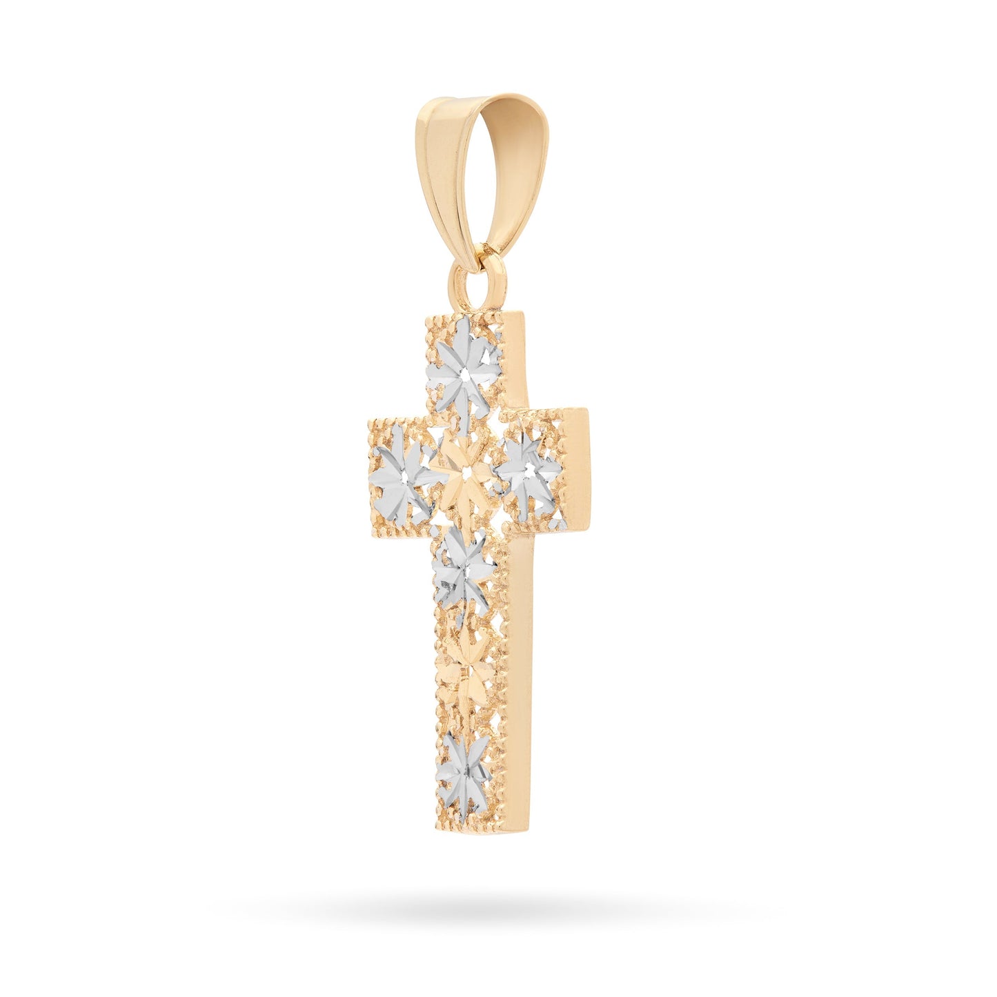 Yellow Gold Cross Pendant With White Gold Floral Details