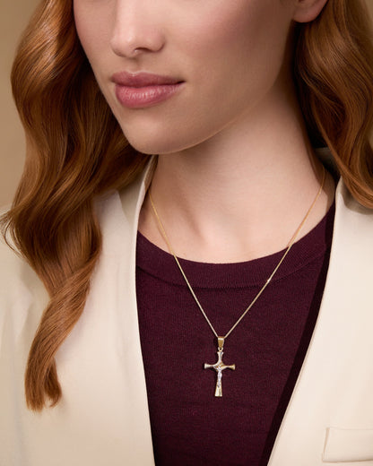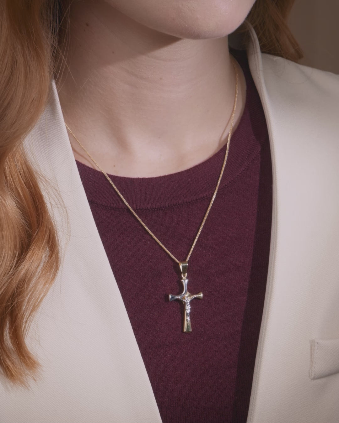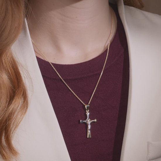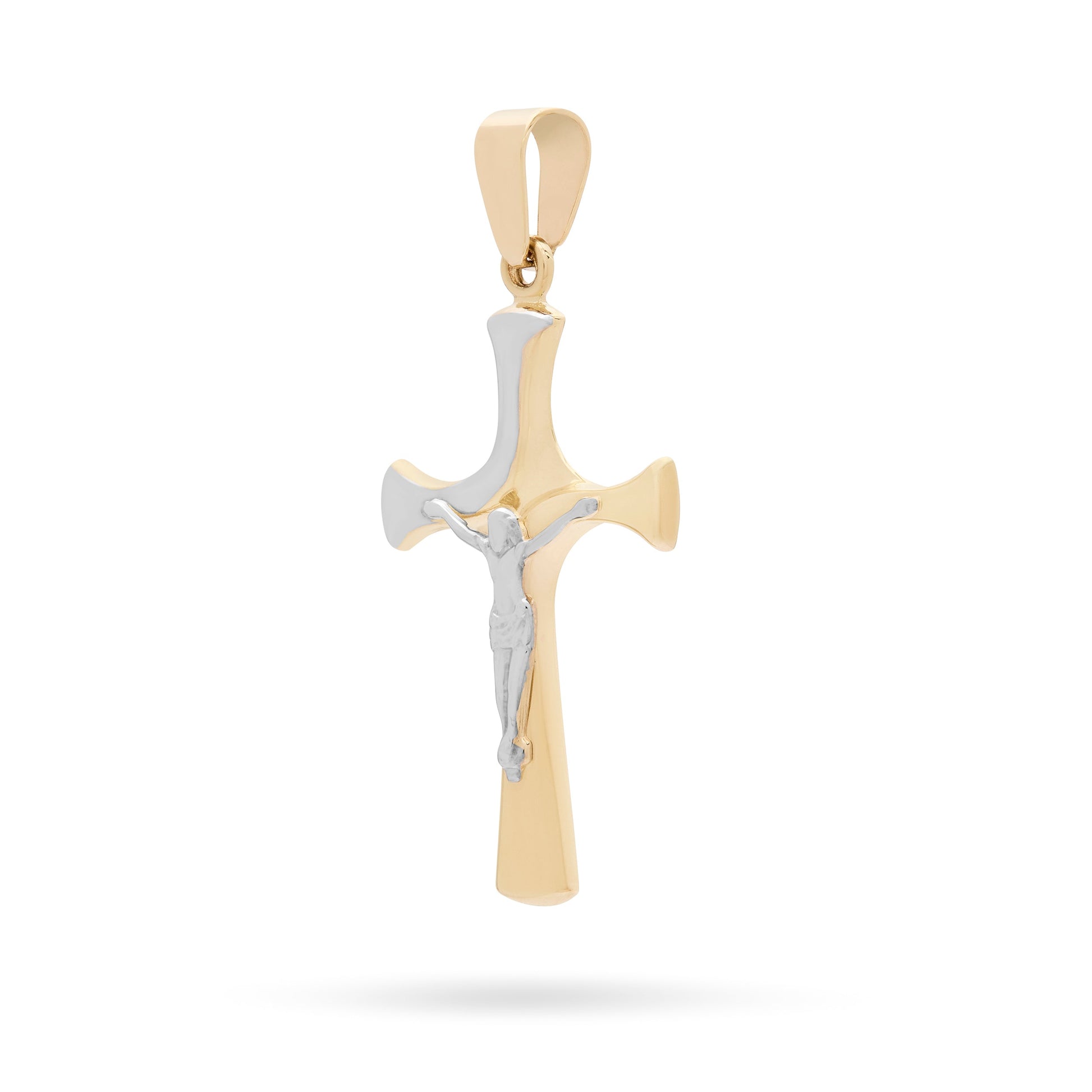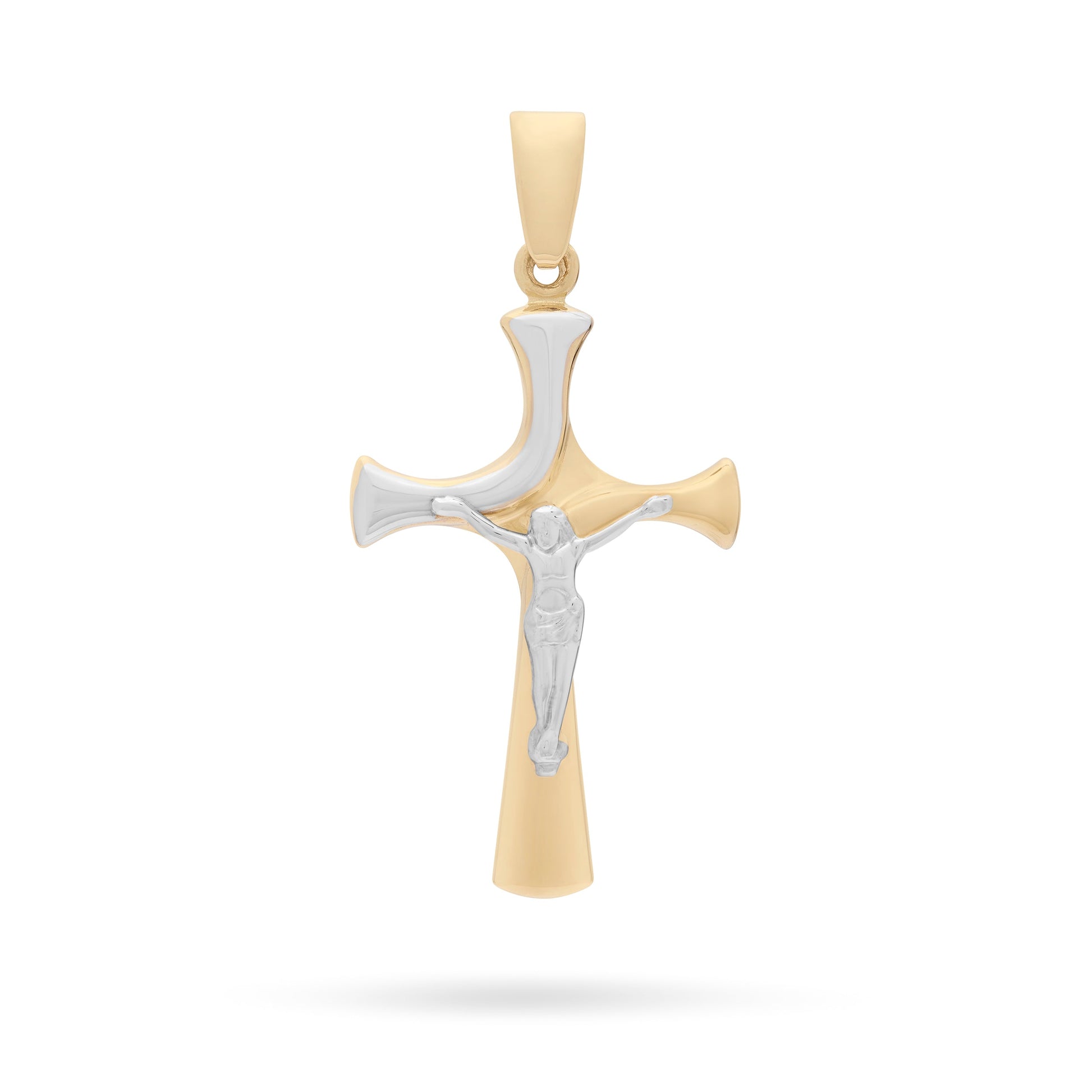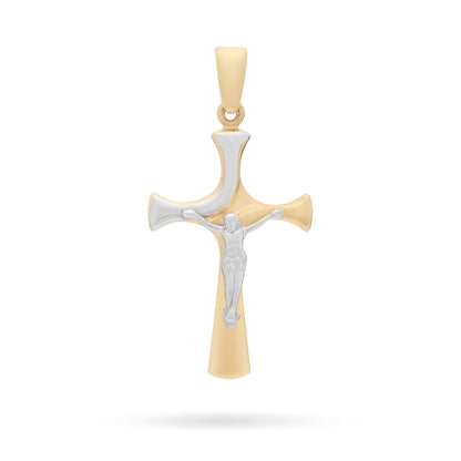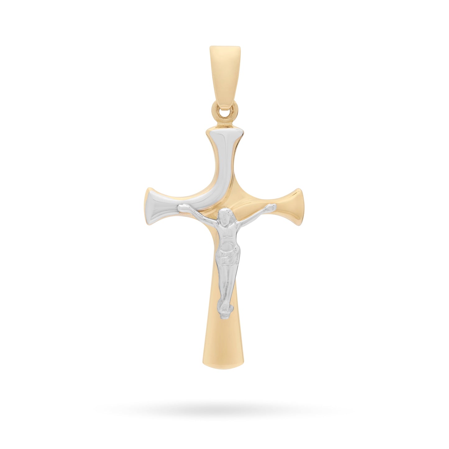 Yellow Gold Crucifix Pendant With Detail and Modern Style White Gold Corpus
