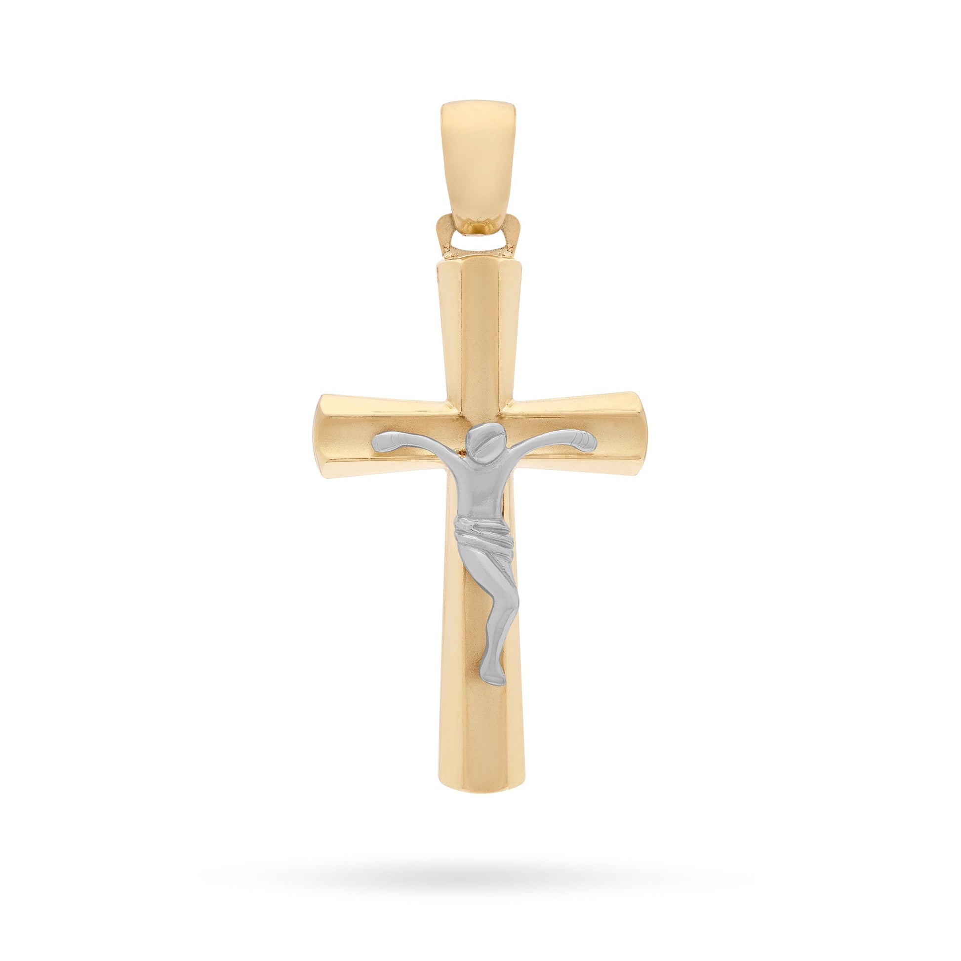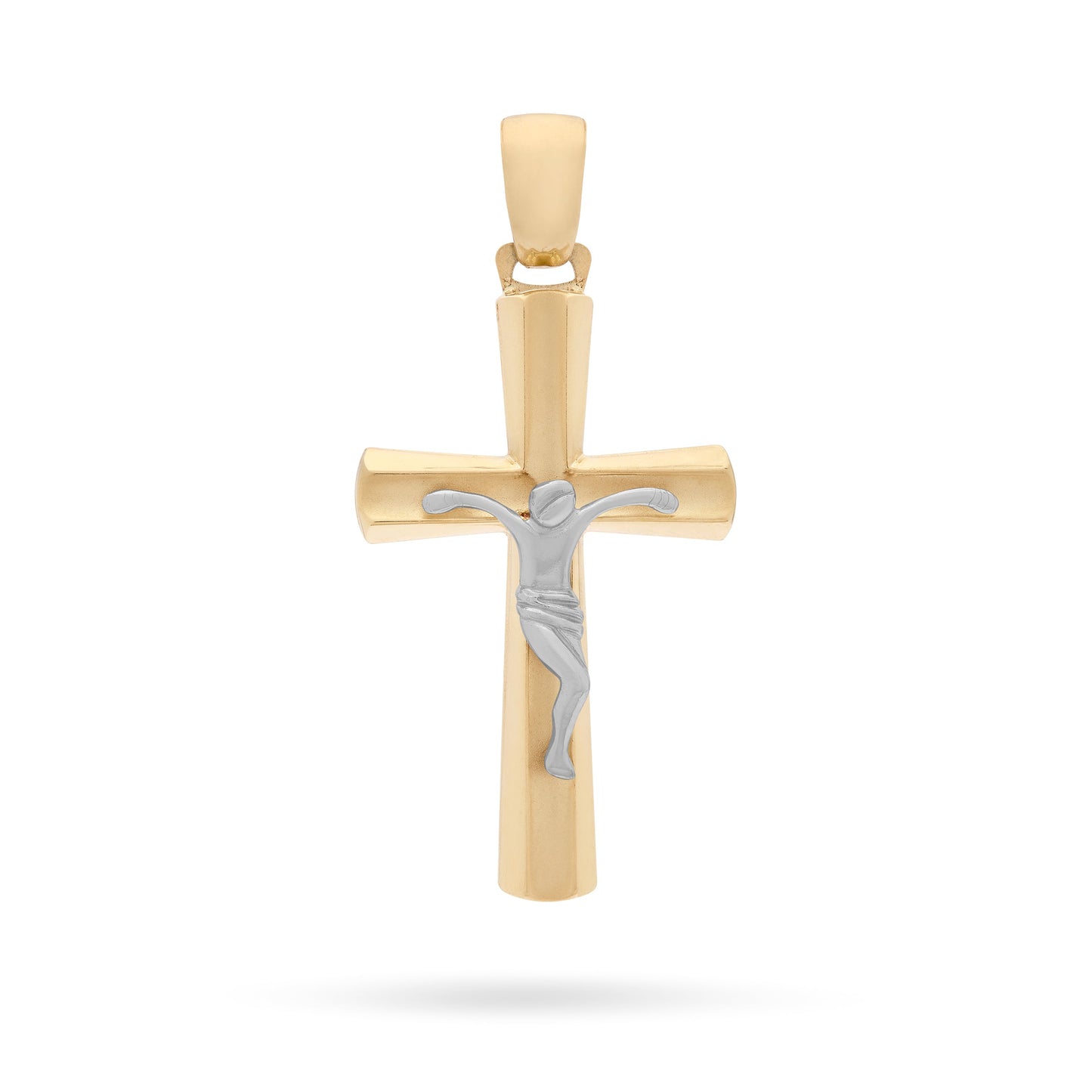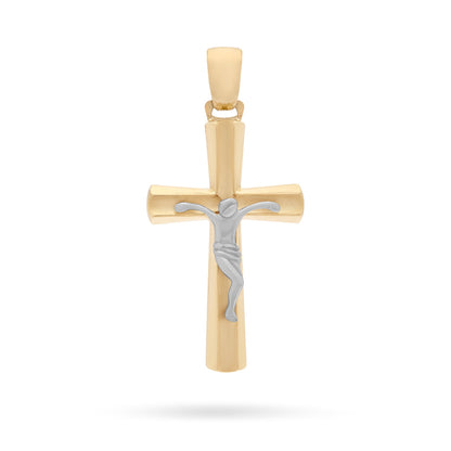 Yellow Gold Crucifix Pendant With Raised Cross and Modern Style White Gold Corpus