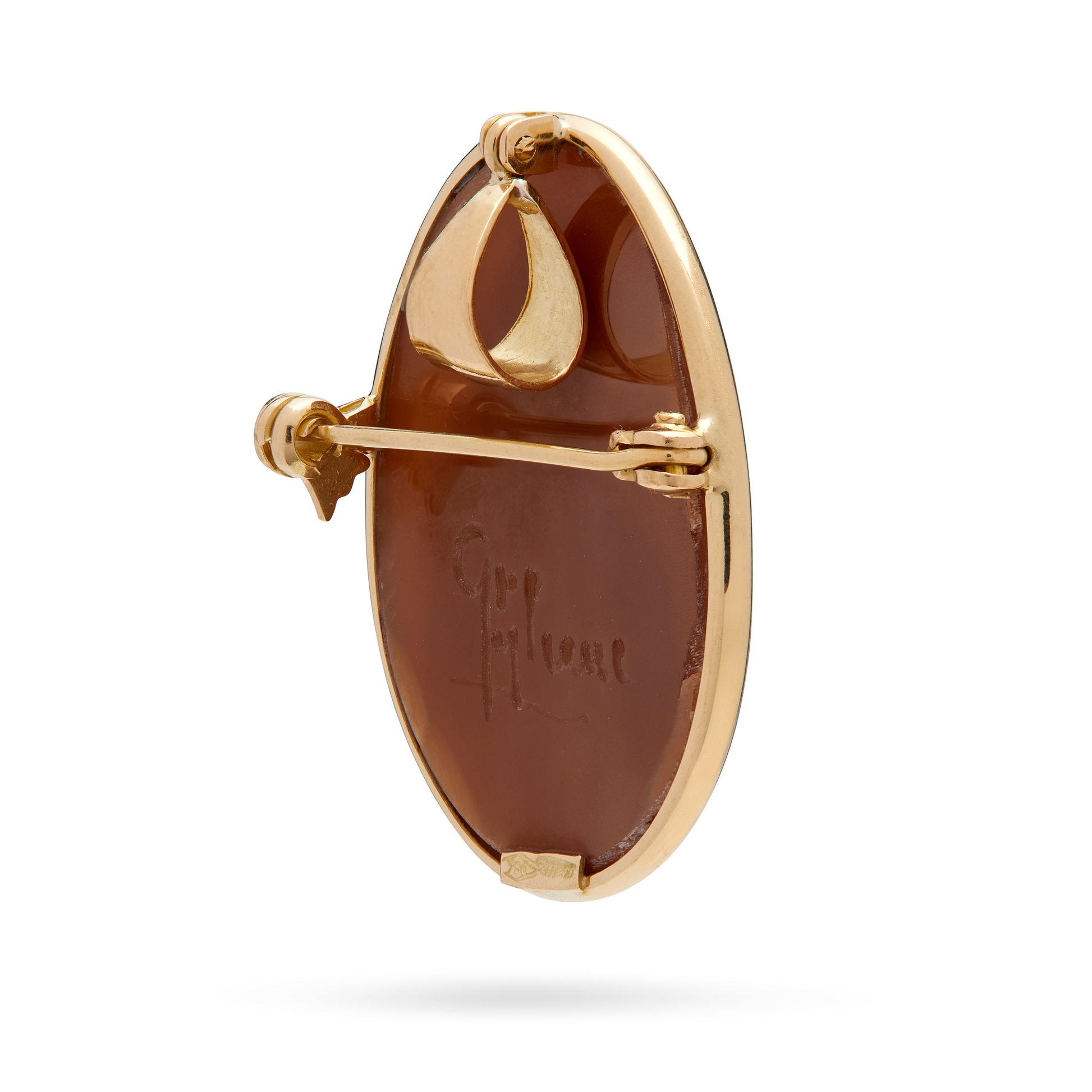 Oval Yellow Gold Brooch and Pendant With Cameo Portraying Virgin Mary With Baby Jesus